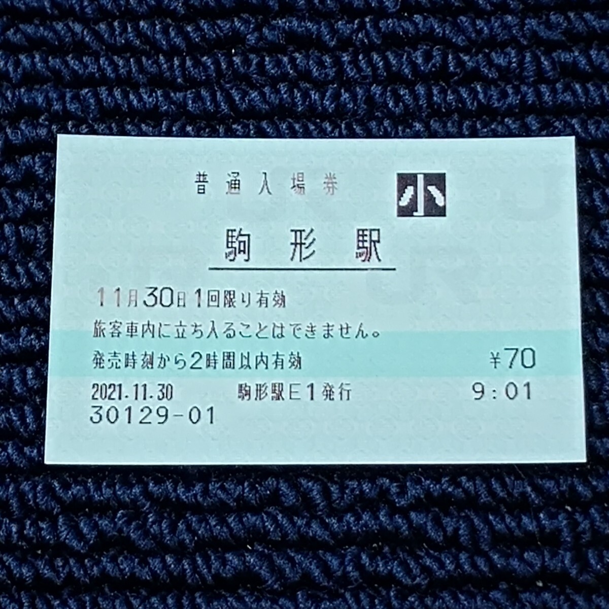 両毛線 駒形駅 普通入場券(みどりの窓口営業最終日・出札窓口閉鎖)JR東日本