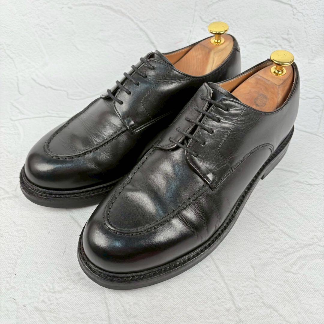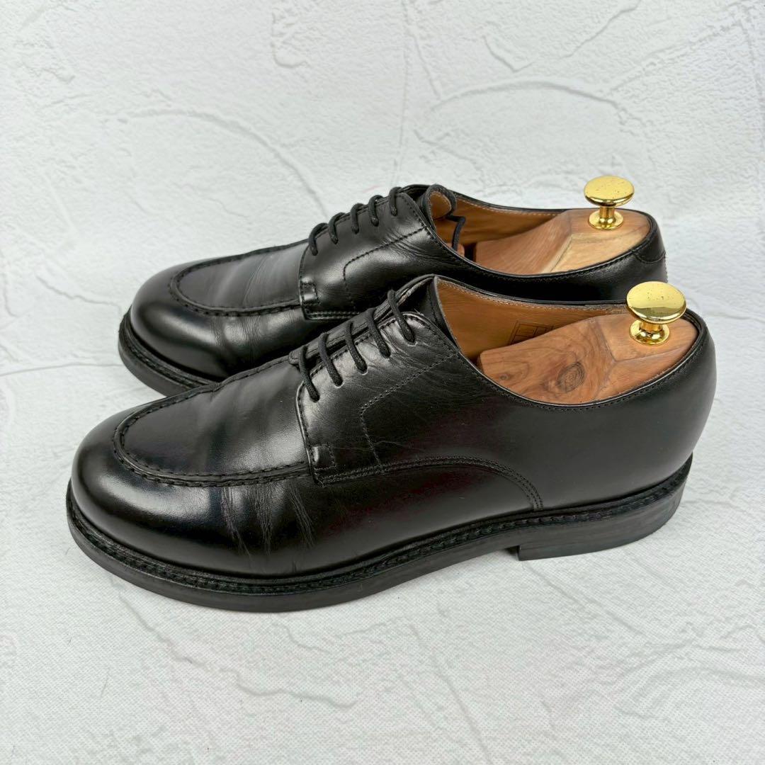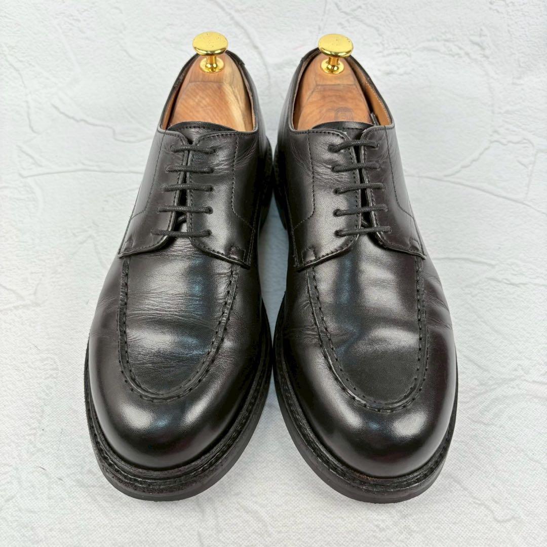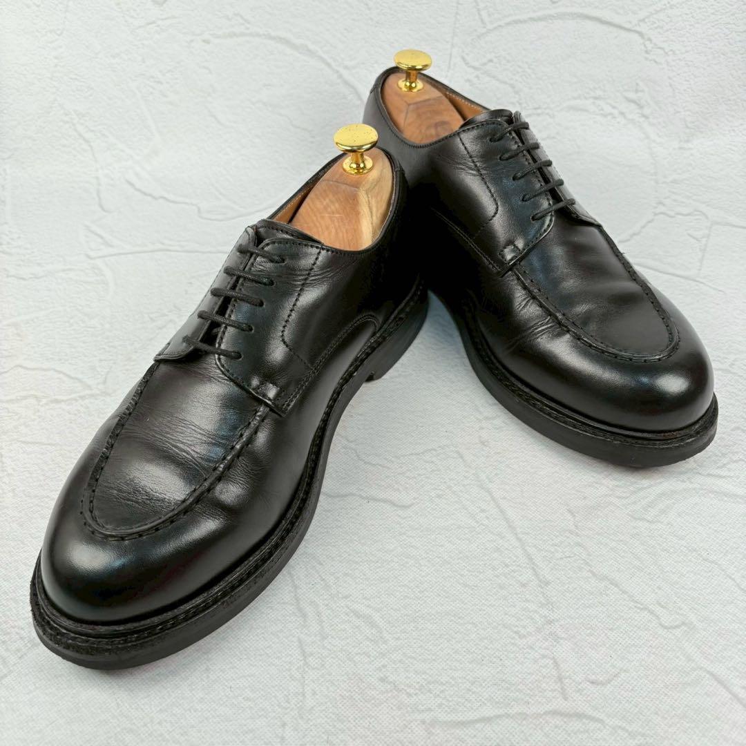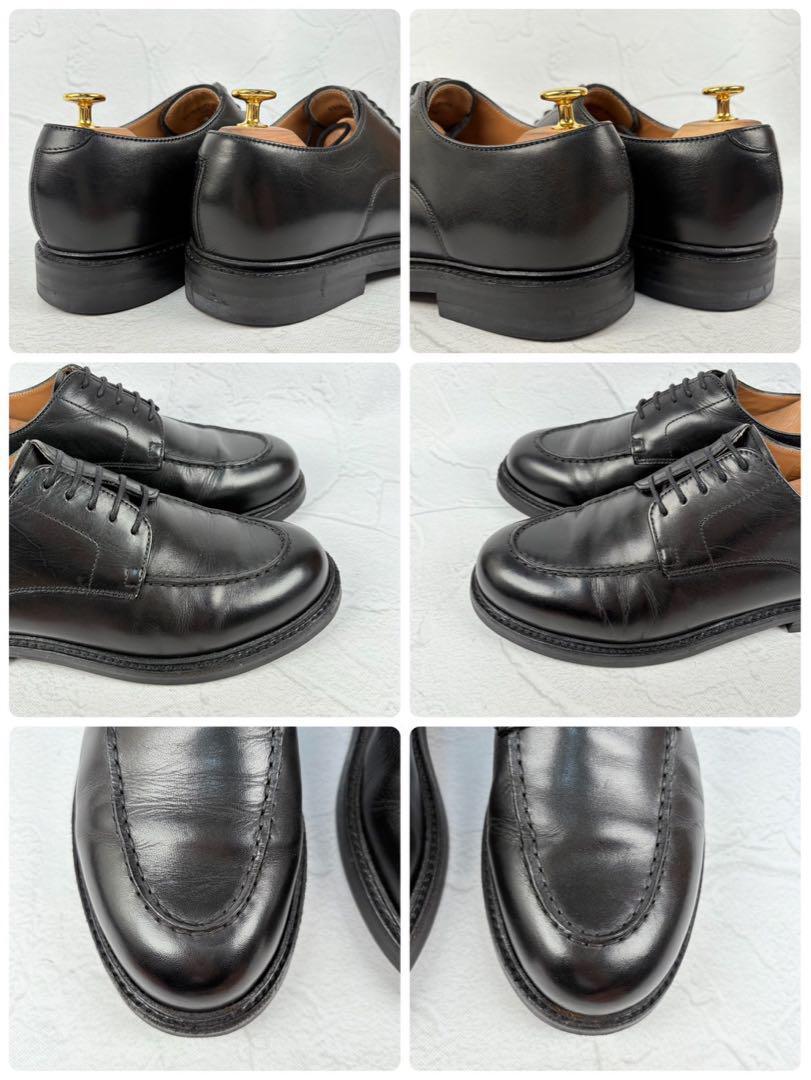 ◆ブランド HARROGATE ハロゲイト ◆商品説明 EDGEWARE(エッジウェア)は、 フレンチカジュアルの定番であるUチップデザインを 取り入れたレザーシューズです。 外羽根式のUチップは「ブラッチャーモカ」とも呼ばれ、 元々軍用靴として開発された背景があり、 幅広い足の形にフィットしやすい特徴を持っています。 EDGEWAREは、フレンチテイストのデザインを HARROGATE流に解釈した代表作です。 専任の木型モデリストが日本人の足の特性に 合わせて設計しており、反りのあるローリング設計の木型を採用しています。 これにより、長時間の着用でも疲れにくく、 足馴染みの良い履き心地を実現しています。 【EDGEWARE -UTIP】 仕様:Uチップ 外羽根 着用:ビジネス カジュアル ドレス フォーマル ◆サイズ / UK 7:25.5cm~26.0cm アウトソール全長:29 アウトソール横幅:11 ヒール高さ:2.5 ◆カラー 黒 ブラック ◆付属品 なし ◆コンディション 写真でも確認お願いします。 つま先→履きジワ かかと→ ソール→ 靴全体→少し使用感ありますが 主観になりますが美品です。 ◆購入元 ブランドリユース店 日本流通自主管理協会加盟店(AACD) 質屋・古物市場・ストア商品 W3221.100
