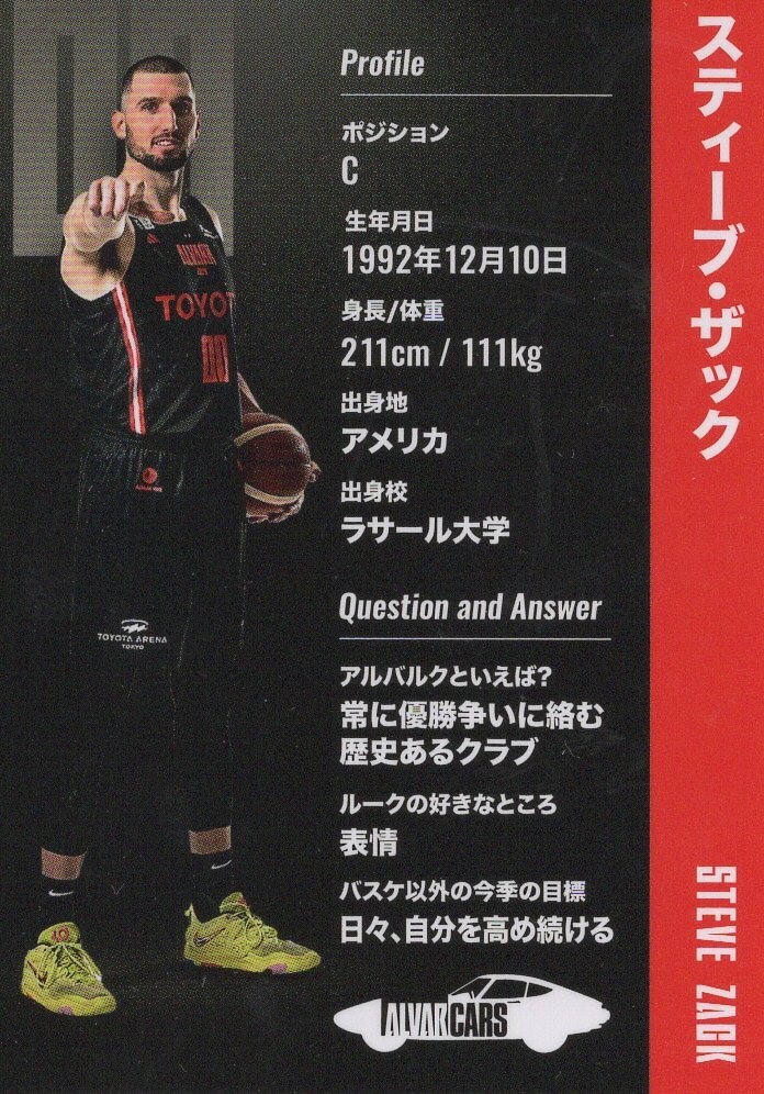 Bリーグ アルバルク東京 2024-25 会場 ファンクラブ来場特典 トレーディングカード スティーブ・ザック