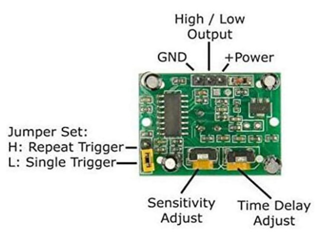 ●センサーの検知距離と延長期間は基板上の半固定抵抗によって個別に調節可能