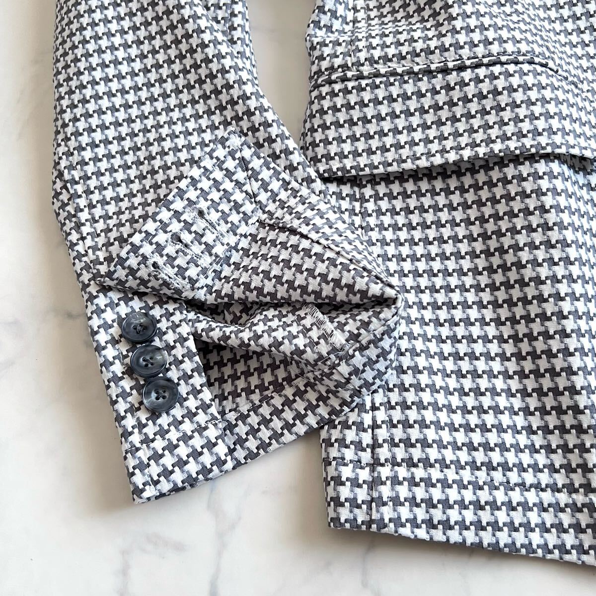 前立ては細めのラペルに、2ボタンのシングル、現代的なシルエットになっています。