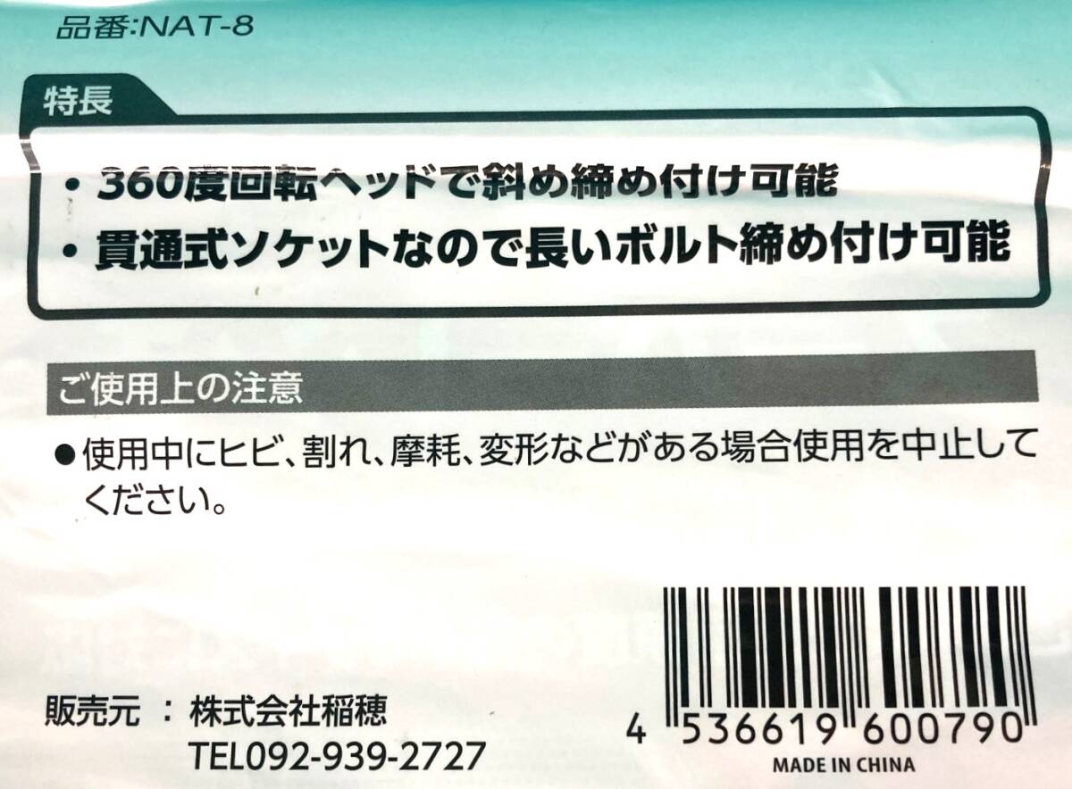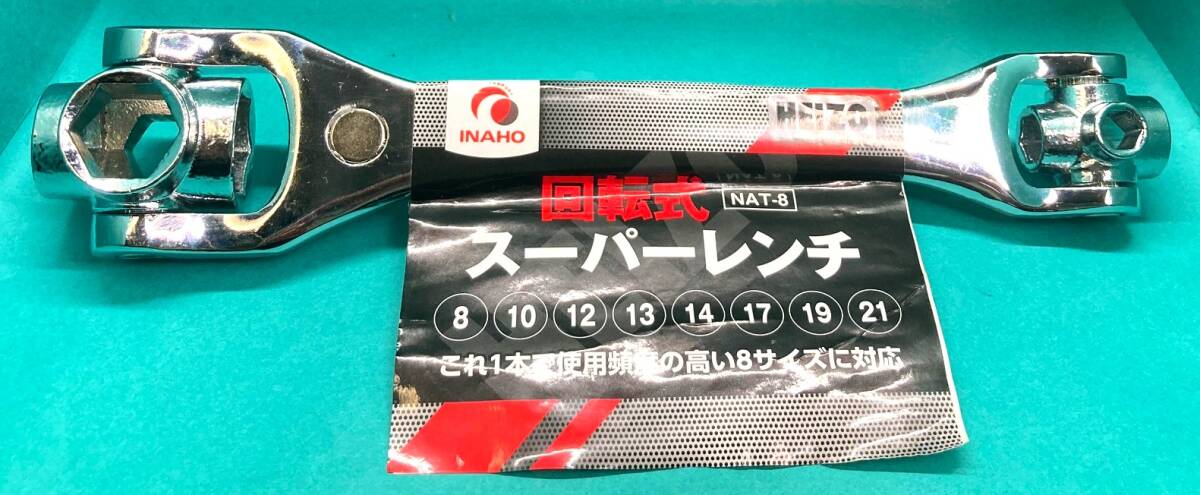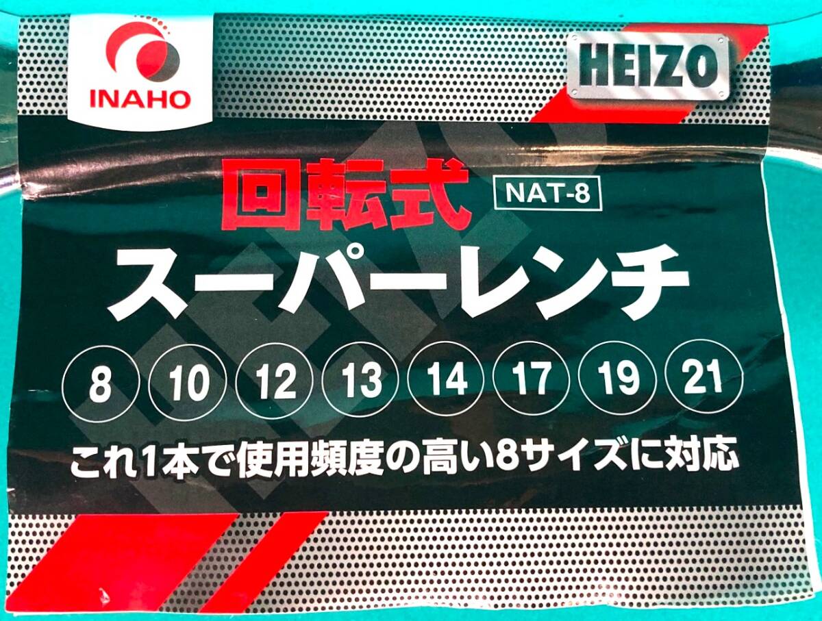 | 商品説明 | テゴリー:工具 品名:回転式スーパーレンチ メーカー:株式会社稲穂(HEIZO) 仕様:8・10・12・13・14・17・19・21mm対応 サイズ:長さ 約247mm・幅 約48mm 品番:NAT-8 数量:1個 状態:新品未使用 ★360度回転ヘッドで斜め締め付けが可能 ★貫通式ソケットなので長いボルト締め付けが可能 ★これ1本を工具箱に入れておけば、マルチな作業に対応できます。 |