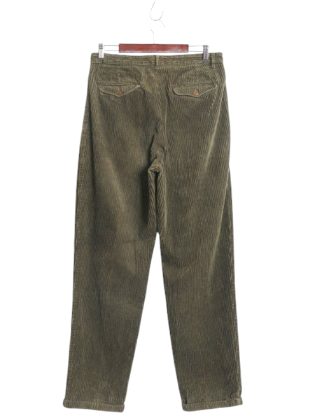 90年代のオールド ギャップ のコーデュロイパンツです。 J CREW、バナリパなどと並んで、話題のオールドギャップ 素材は、87% COTTON 13% POLYESTER しっかりとした厚手のヘビーウェイト 太畝コーデュロイ、秋冬に対応する素材が使用されています。 両サイド、両バックにポケット付き 合わせやすい、人気カラーのオリーブグリーン ツータック入りのゆったりとした 若干テーパードのかかった綺麗なストレートシルエット 裾はダブル仕上げになります。 流行に左右されないシンプルなデザイン これさえあれば何かと重宝する 着回しのきく商品です。 |