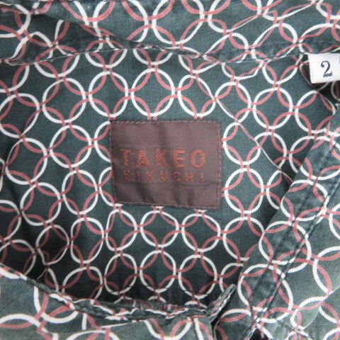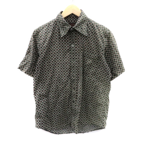 タケオキクチ TAKEO KIKUCHI カジュアルシャツ 半袖 総柄 オーバーサイズ 2 マルチカラー ダークグリーン /YK33 メンズ