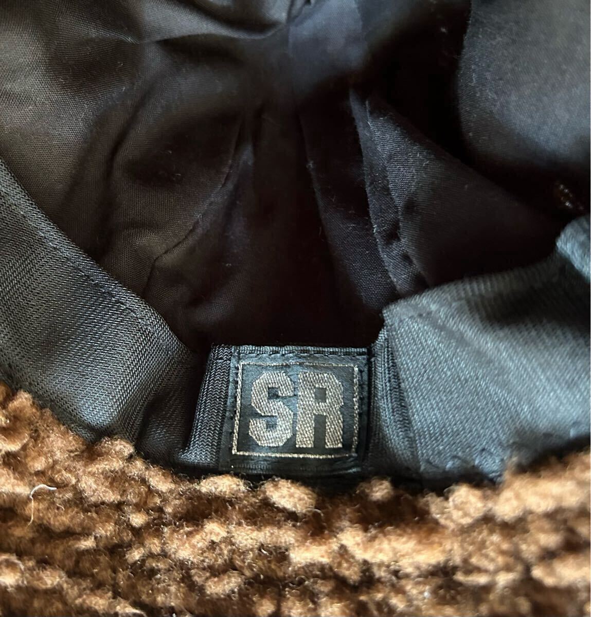 茶色と白のモコモコのハットです。