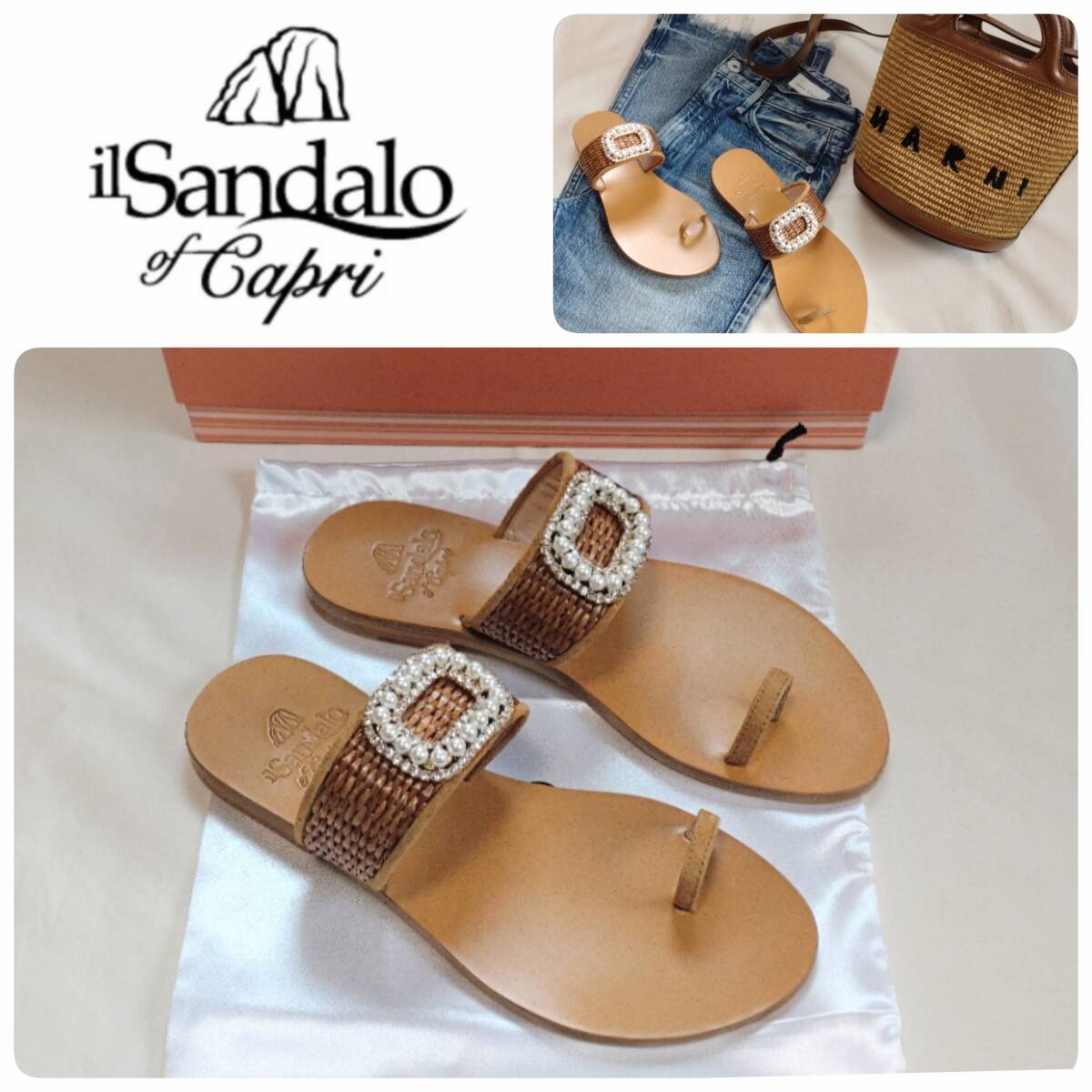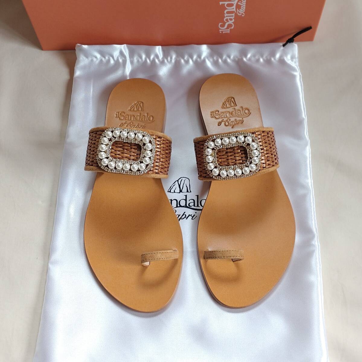 定価44,000円 新品 il Sandalo of Capri イルサンダロオブカプリ パール スワロフスキー ビジュー トング サンダル フラット 35/22.5~23cm