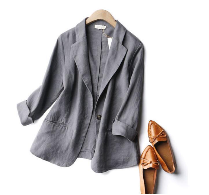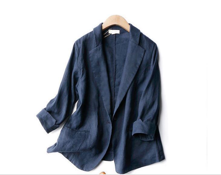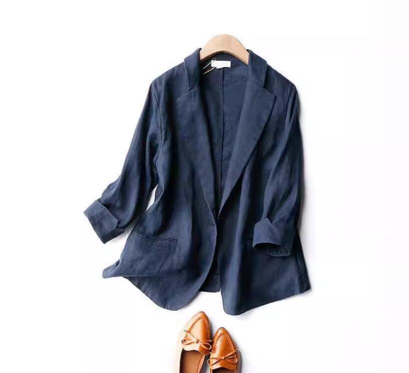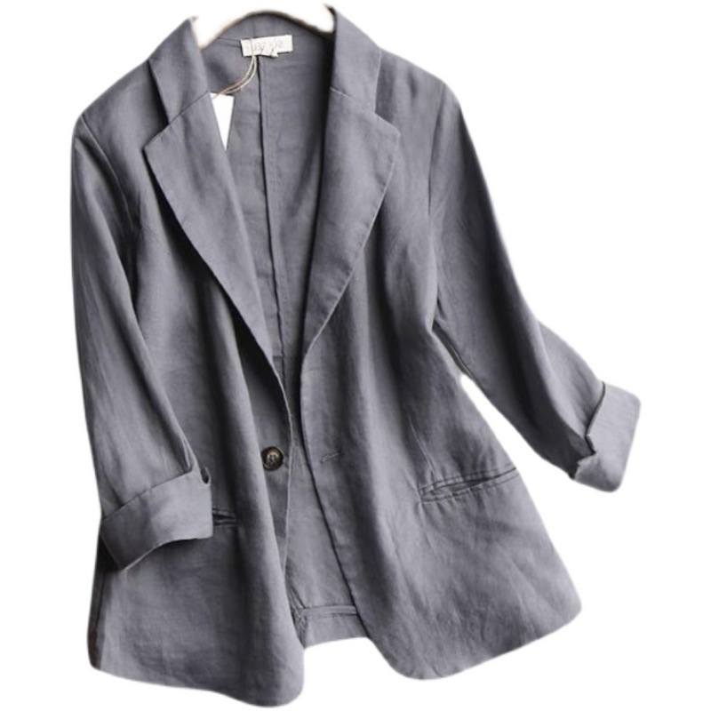新入荷新品お色選択可ゆったり大きいサイズカジュアルレディース綿麻7分袖通勤ジャケットLサイズ(サイズ選べる)ブルー