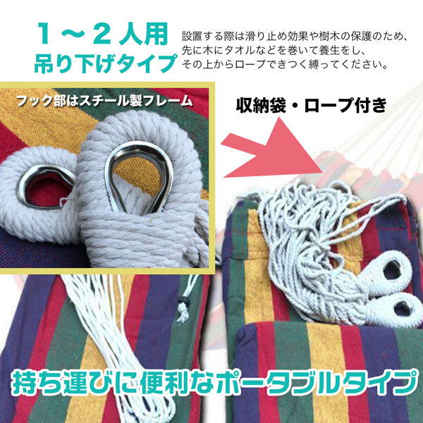 【訳有】ハンモック CF 2点セット 新品 未使用 1~2人用 アウトドア キャンプ 布製 室内 庭 中庭 野外 収納袋付 アウトレット hmk-ds-cf