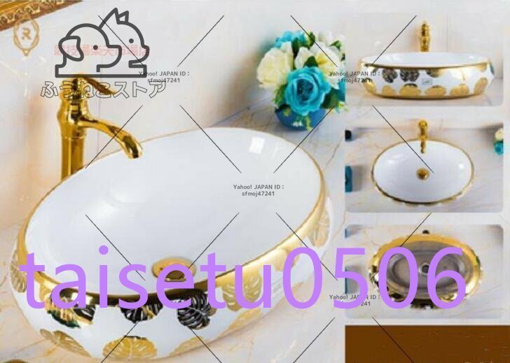 洗面ボウルセット 洗面ボール 豪華洗面台 陶器 手水鉢 手洗器 手洗い鉢 洗面器 蛇口 排水金具付き