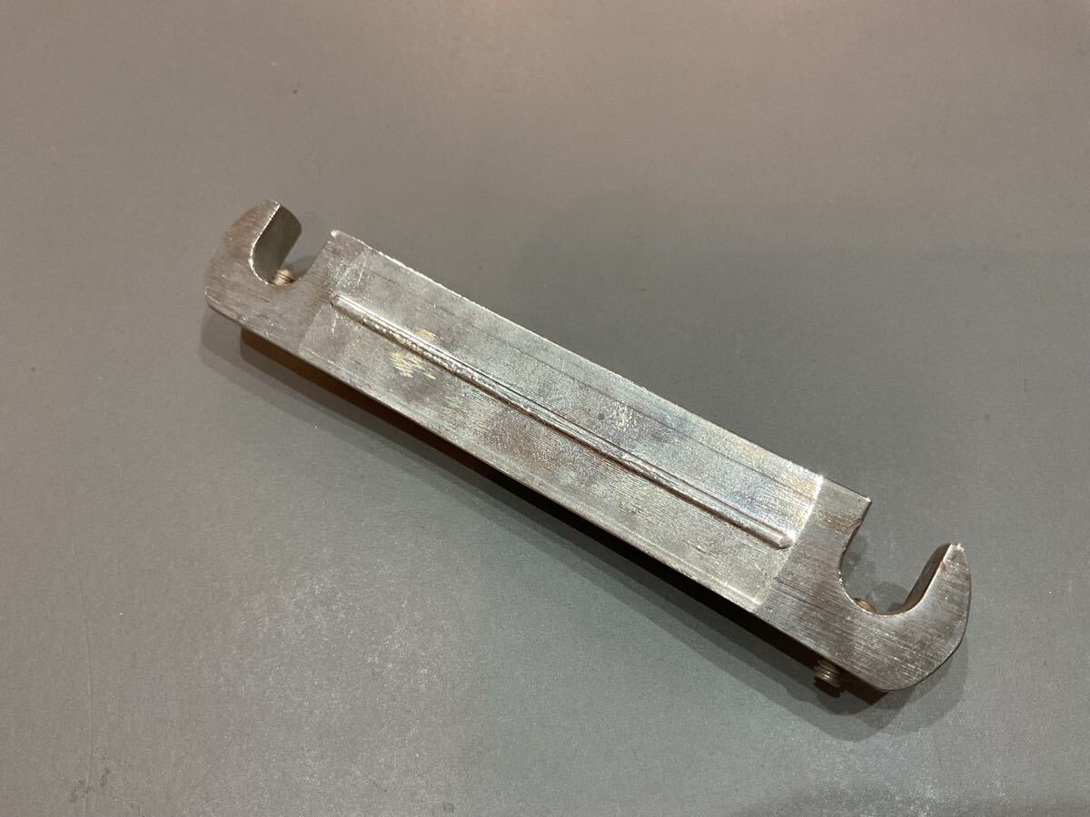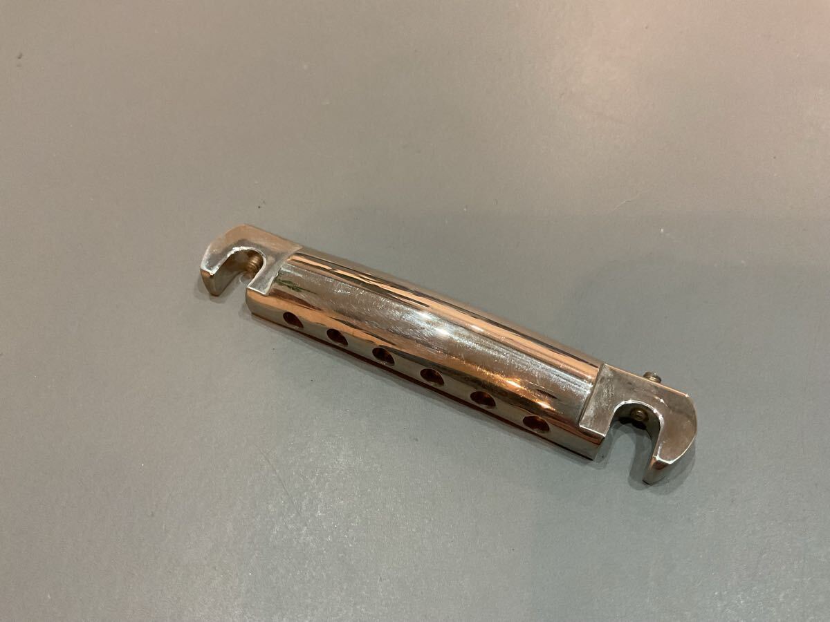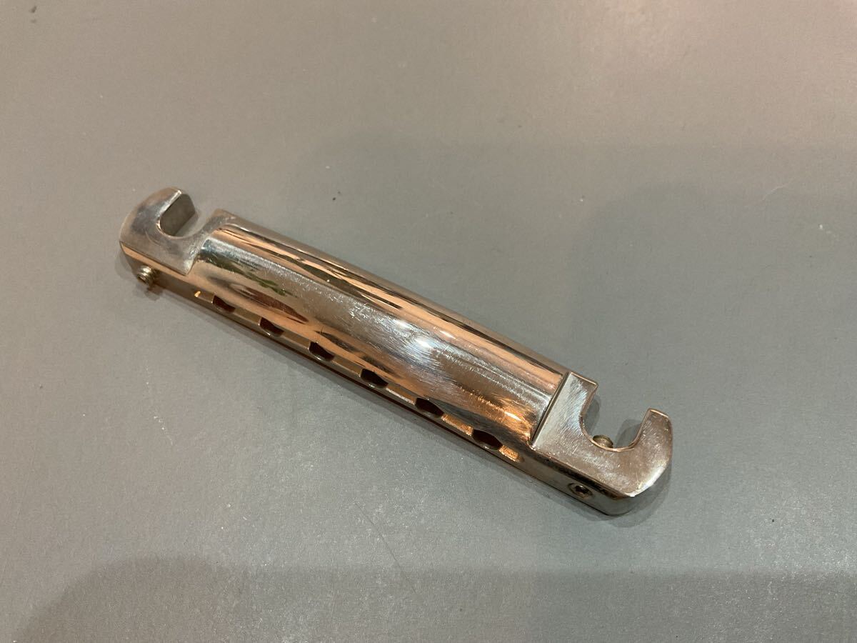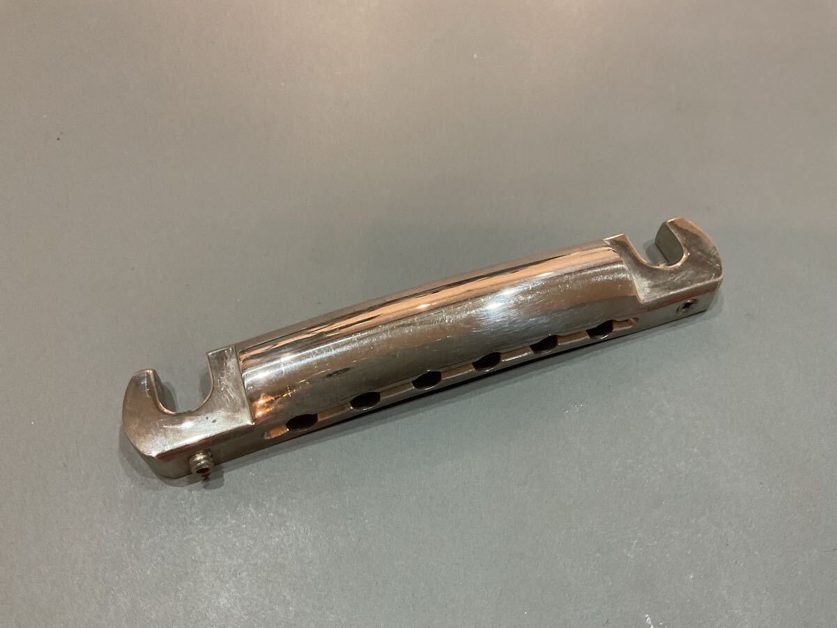 マーフィーラボのレスポールジュニアのテールピースです。サドルなしの軽い初期タイプのアルミで通常のテールピースでラップアラウンドは珍しいです。