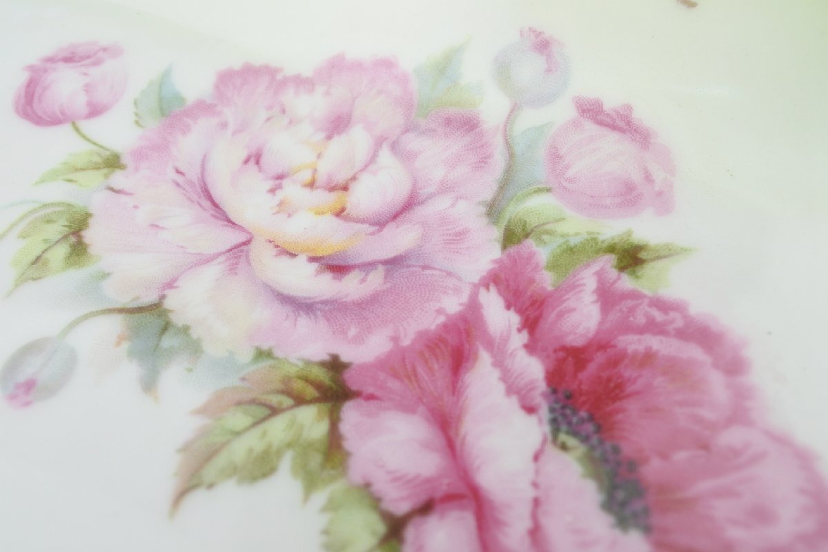金縁とグリーンのグラデーション地にピンクの花模様が大変気品のあるインテリアにも最適な一品です。