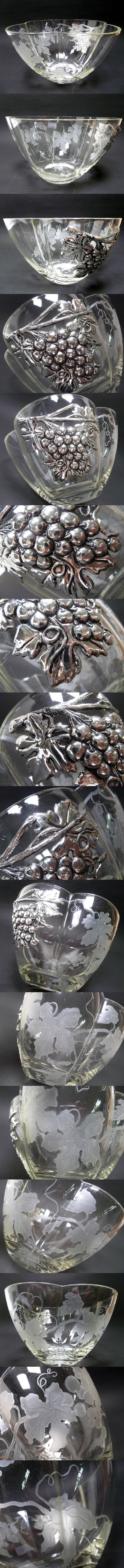 (☆BM)ガラス製 ぶどう アート 四葉型 ボウル 花器 キャニスター 花瓶 オブジェ フルーツボウル プラター 水盤 フラワーアレンジメント