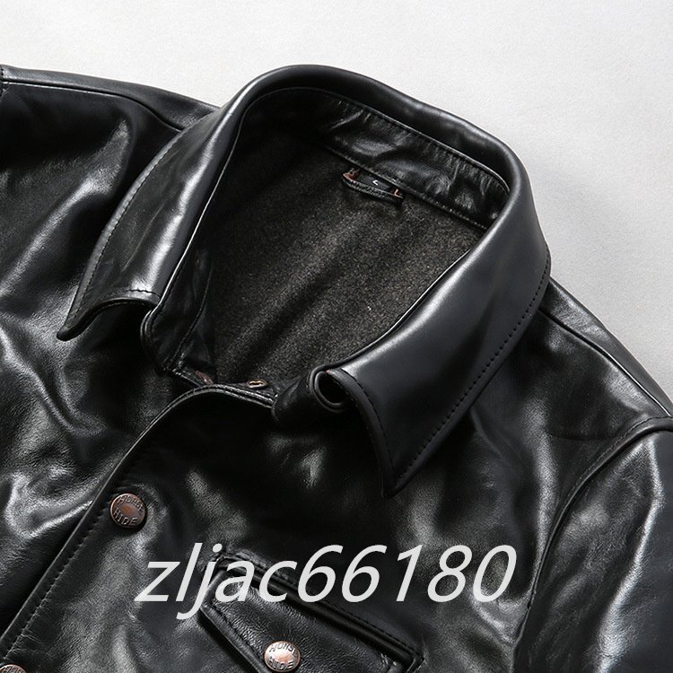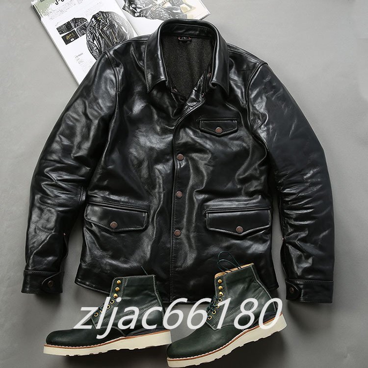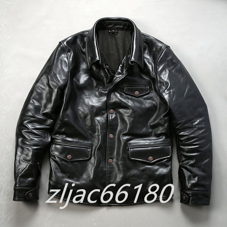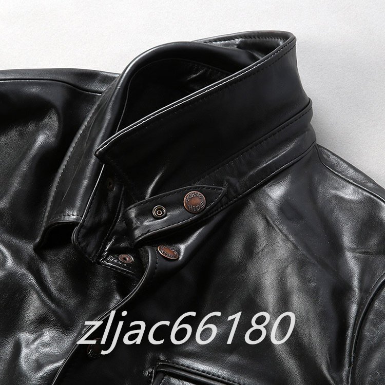 レザージャケット 上品 アメカジ 本革  馬革 茶芯ホースハイド ライダースジャケット バイクジャケット  革ジャン M~4XL 黒