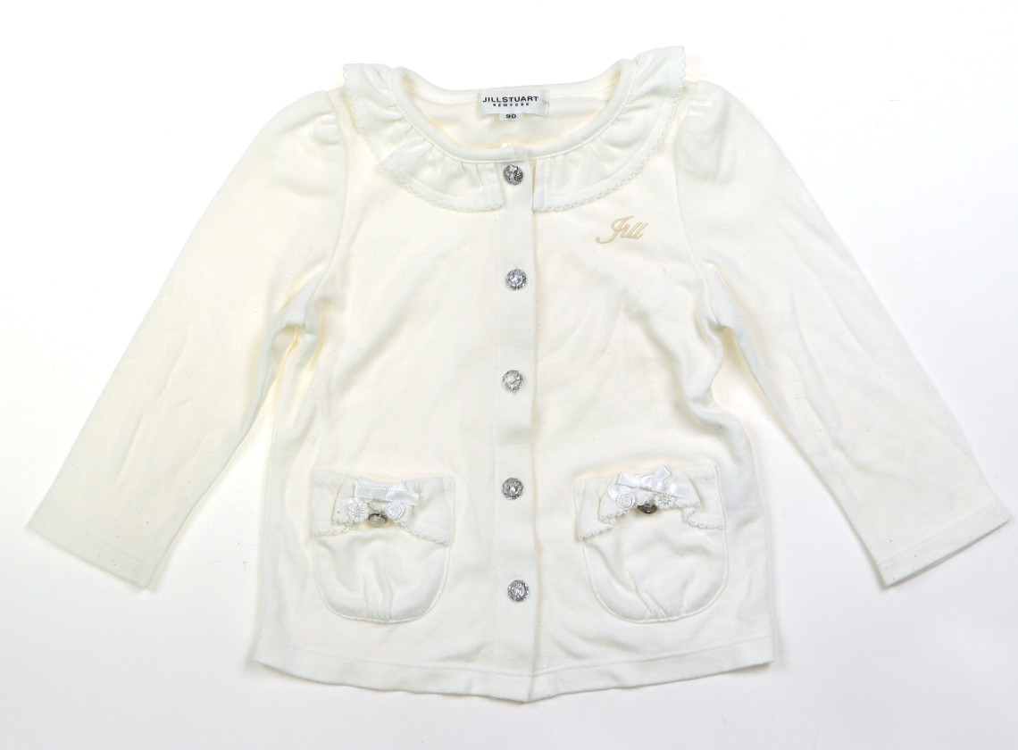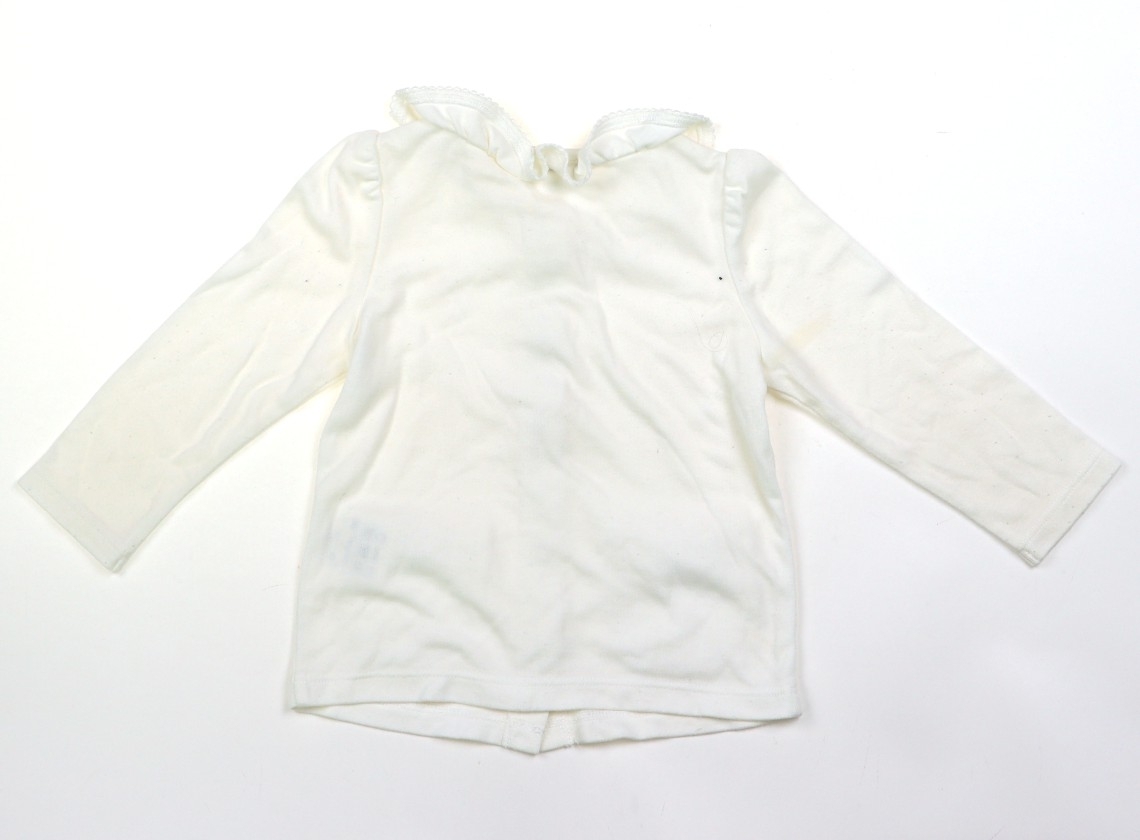 カットソー素材。全体に毛玉が見られ、右袖に黄ばみ染みがあります。袖丈約29cm。