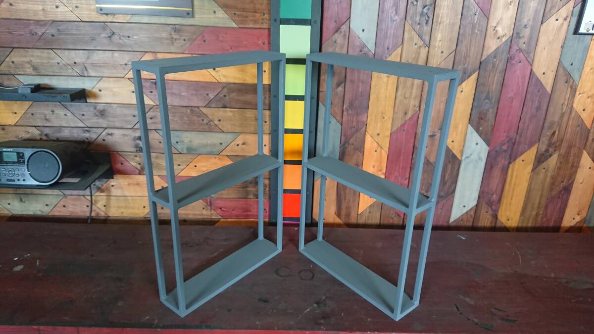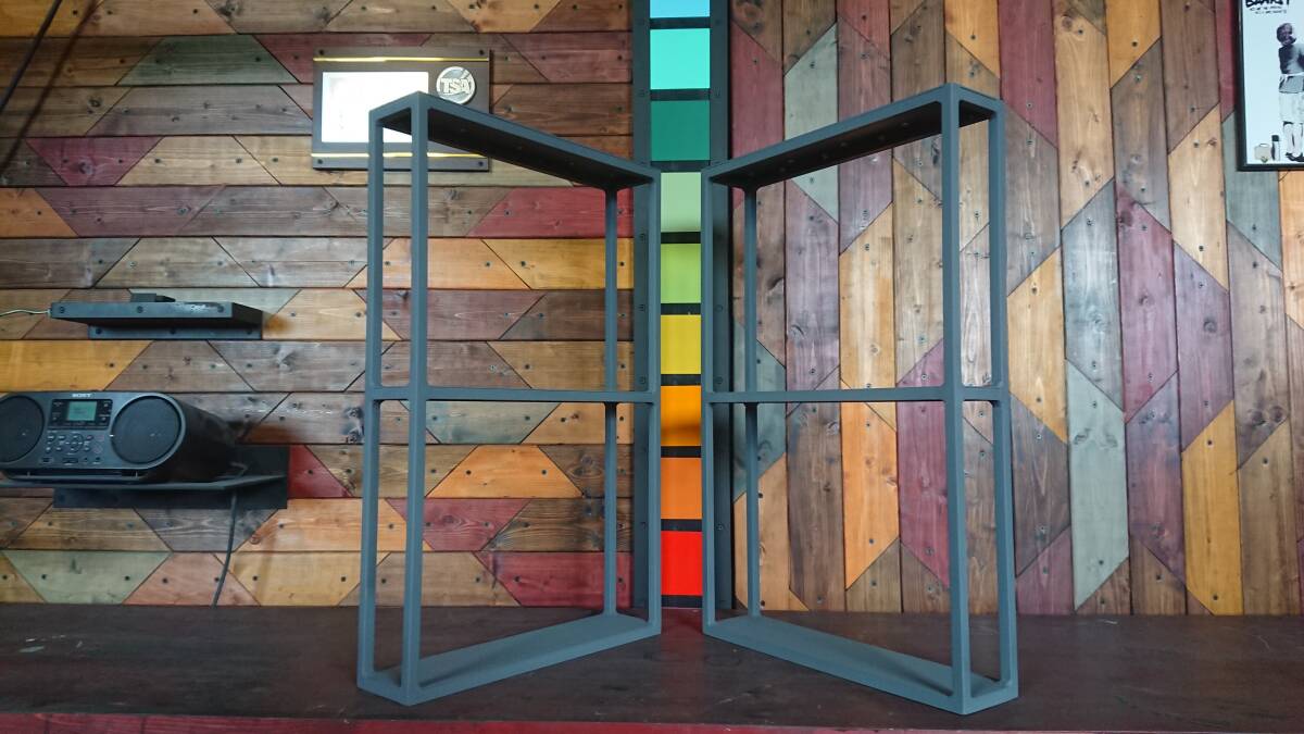 ハンドメイドの鉄脚2脚1組での出品です。12.7mmの角鉄を使用しておりますので、とても重厚感があります。またデザインもスタイリッシュでかっこいいと思います。