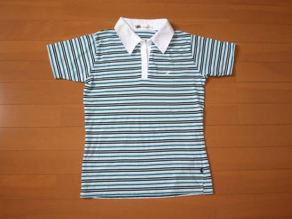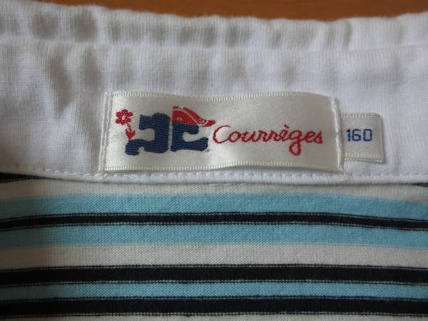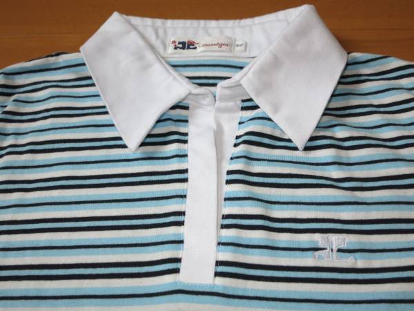 クレージュ(Courreges)の半袖スキッパーシャツ 青です。1回短時間のみ使用した美品です。スキッパーのガールズサイズ160の製品ですが、大人の女性では9号Mに相当します。平置で肩幅37cm、脇下身幅45cm、丈62cm。襟の開口部の中間に小さいホックが1つ付いていて、キャミやタンクトップなどのインナーが無くても一枚で着られます。とても上品で可愛いです。ご検討宜しくお願い致します。ノークレーム・ノーリターンでお願いします。(F33)