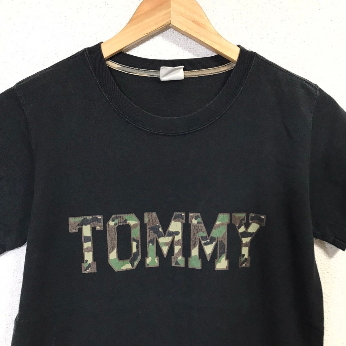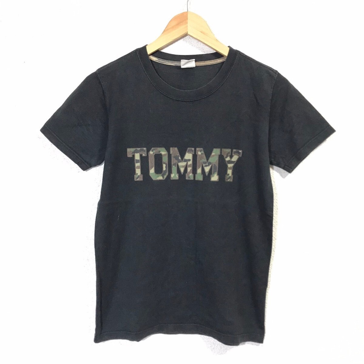 FA755dL TOMMY トミー サイズS 半袖Tシャツ ロゴプリント 迷彩 カモフラ ブラック 黒T メンズ レディース コットン トミーヒルフィガー