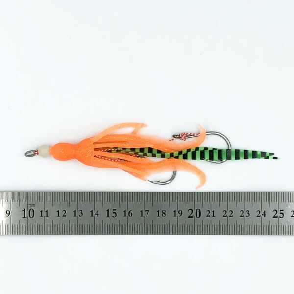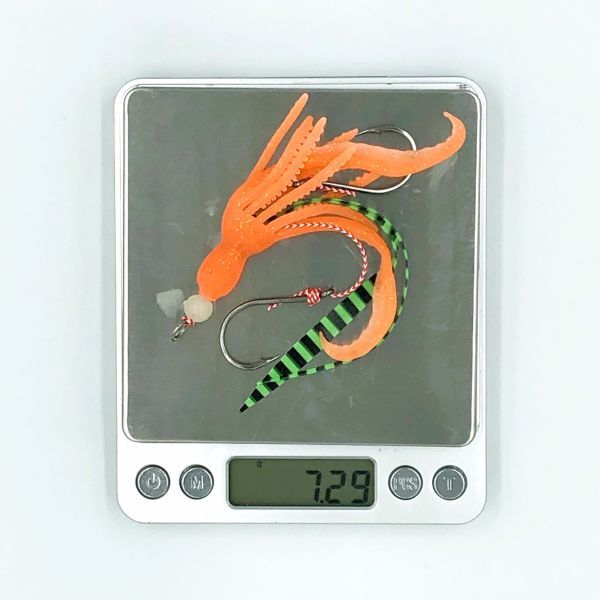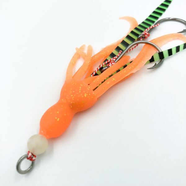 100342 耐久性・伸縮性の高い ツインカーリー タコベイト 7g オレンジラメ 2本セット タイラバ インチク マダイ ヒラメ タコロック風