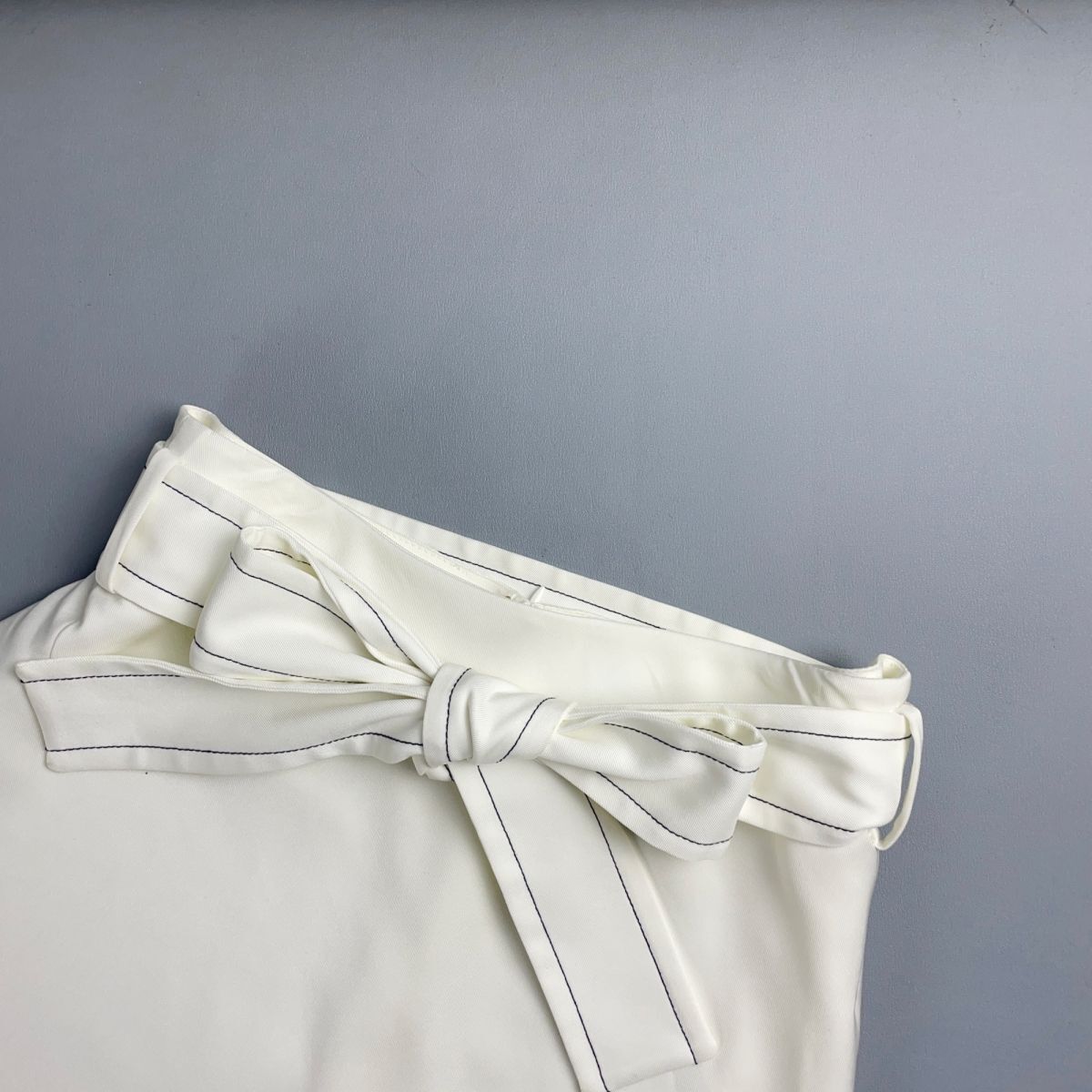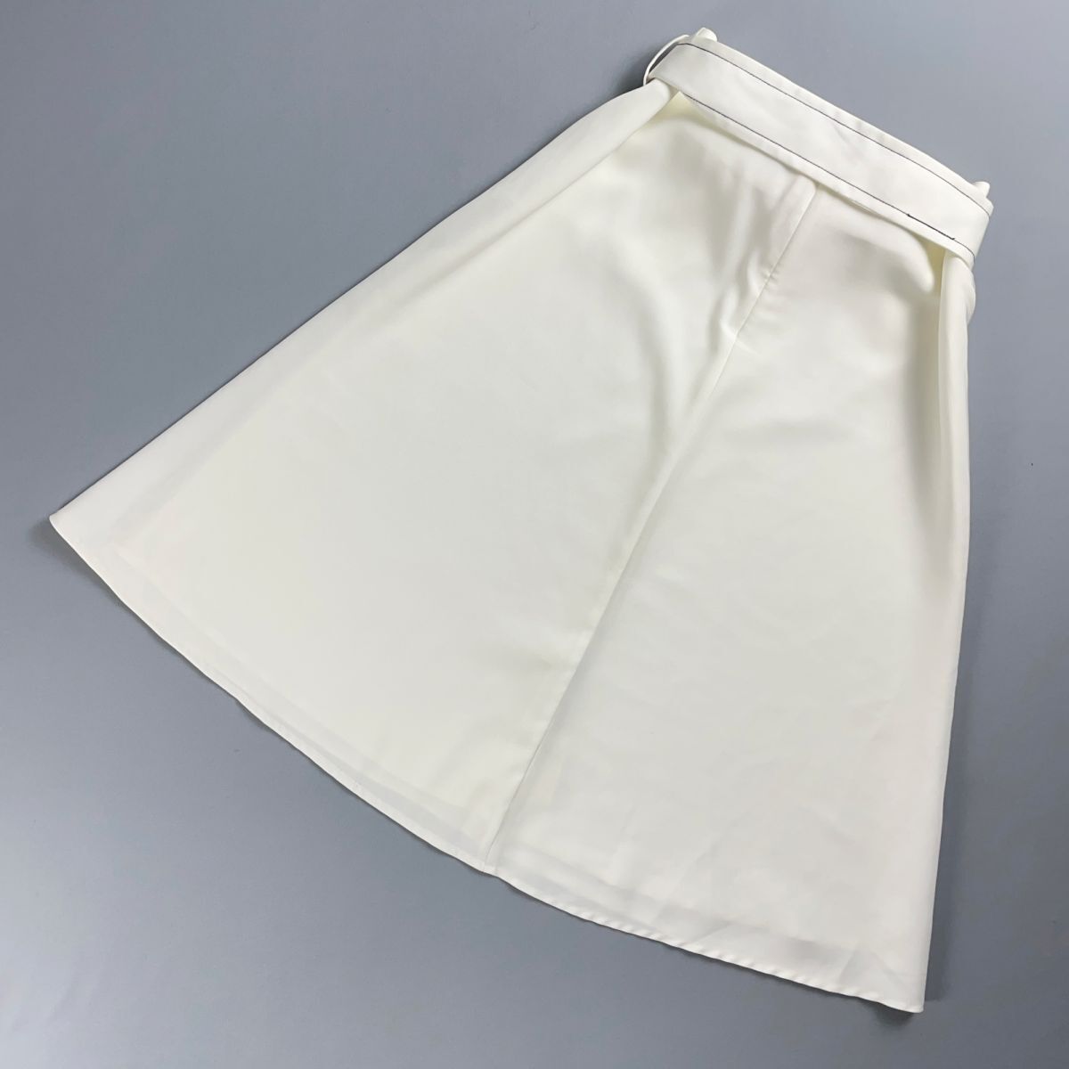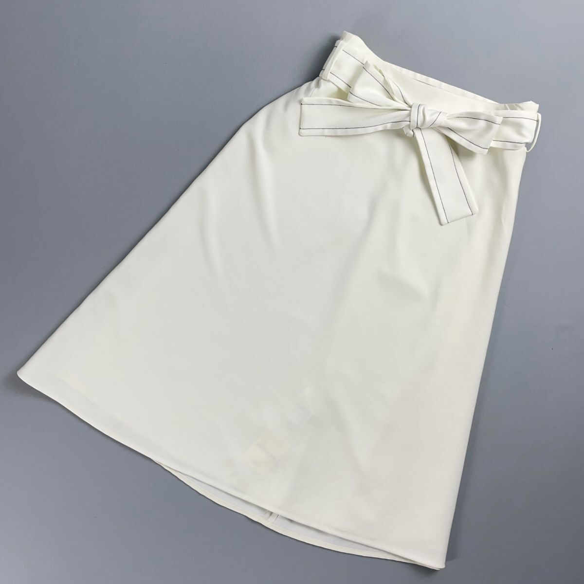 美品 Demi-Luxe BEAMS デミルクス ビームス フレアスカート ウエストリボン バックジップ ミモレ丈 裏地あり 白 ホワイト サイズ36*RC1378