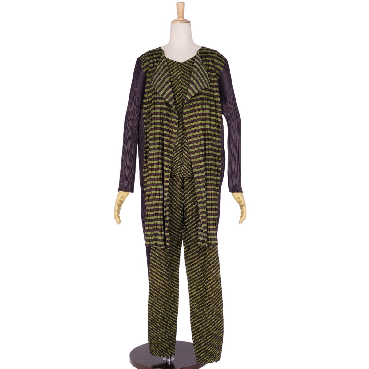 美品 プリーツプリーズ イッセイミヤケ PLEATS PLEASE セットアップ カーディガン ブラウス パンツ レディース 3 |