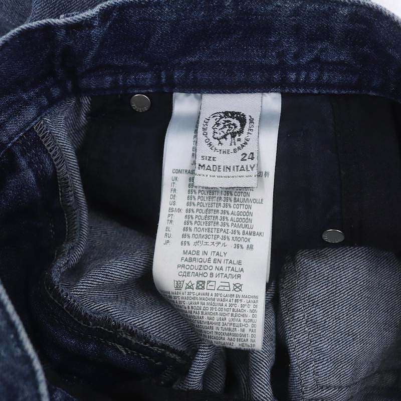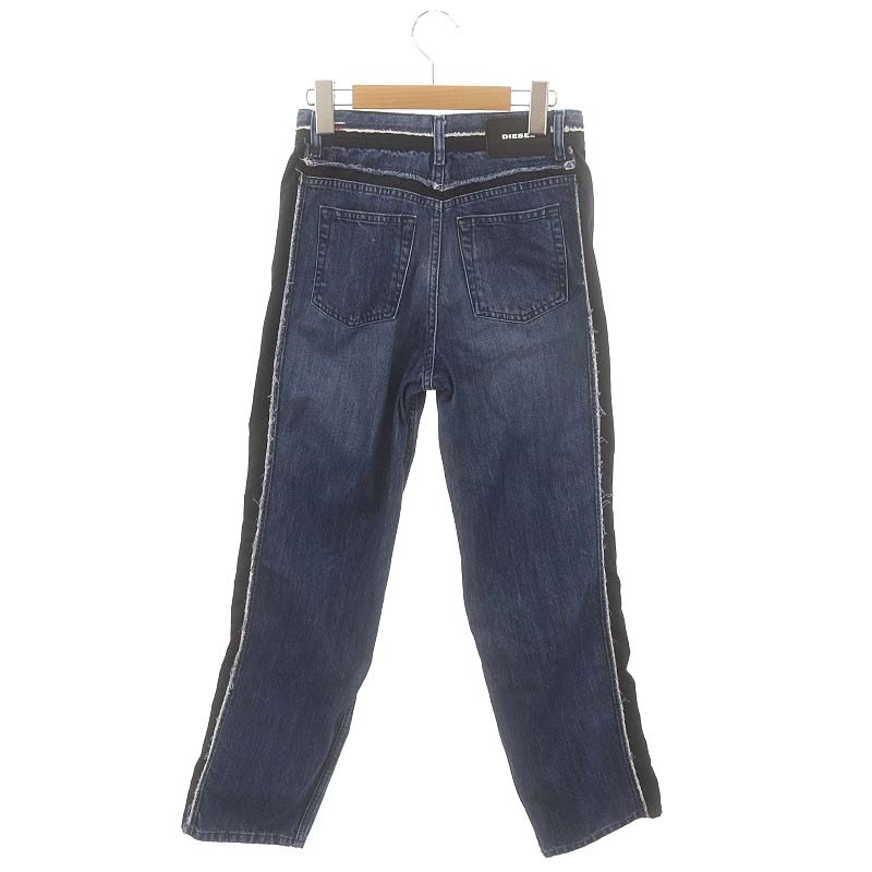 ディーゼル DIESEL サイドライン デニムパンツ ジーンズ ボトムス ジップフライ コットン 24 XS 紺 ネイビー 黒 ブラック /YQ ■OS レディース