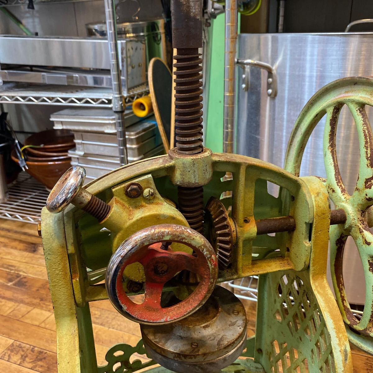 商品説明 | サイズ:約幅47×奥32×高67-82cm 素人採寸となります。 全体的に使用感、経年劣化がみられます。さび付きもございますのでハンドルが硬くなっております。 刃は交換が必要かと思われます。また氷を押さえるバーの先端についている釘がさびております。 発送時発送サイズを抑えるためハンドルを外して梱包いたします。組み立ては落札者様にてお願いいたします。 現物をご覧になりたい方はご来店の3日前までに質問欄か弊社までご連絡をお願いいたします。 リサイクルショップアクアHP https://re-aqua.com/ 以上から本商品は現状でのお渡しとなりまます。 注意事項・発送方法をよくご確認の上ご検討お願いいたします。 | |