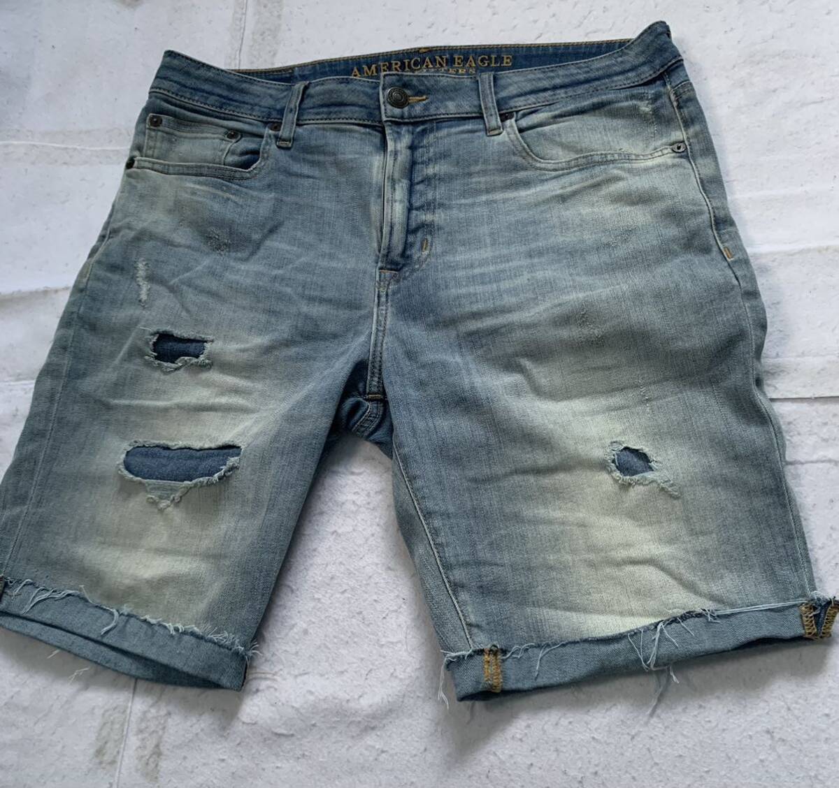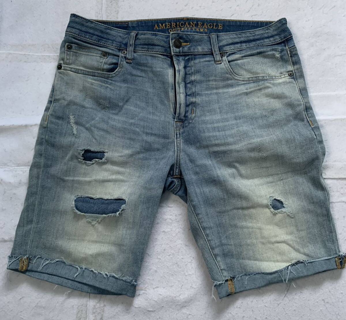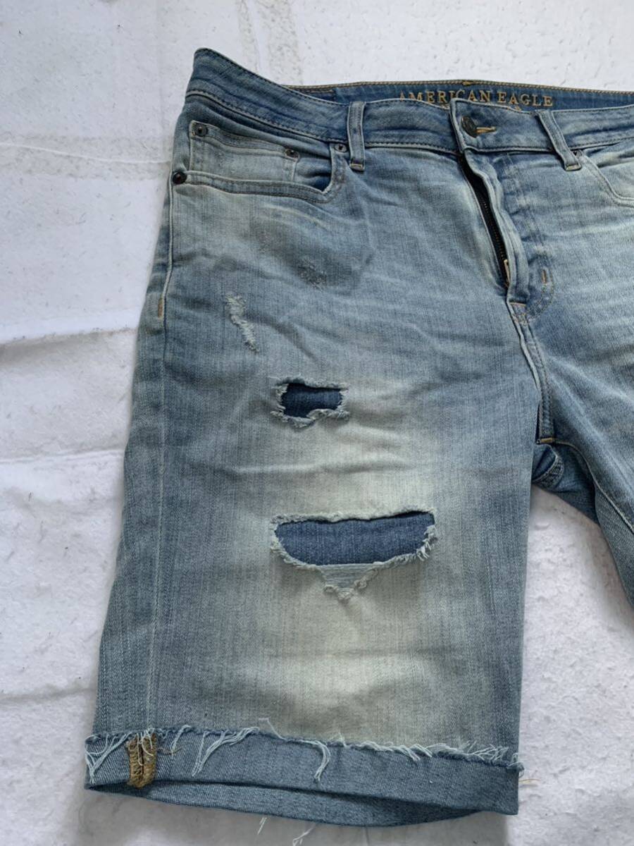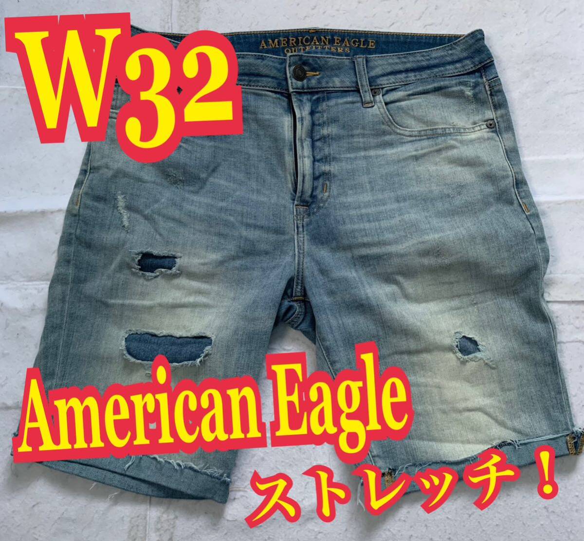 American Eagleアメリカンイーグル ハーフデニム ジーンズ ストレッチ 短パン リペア加工 W32