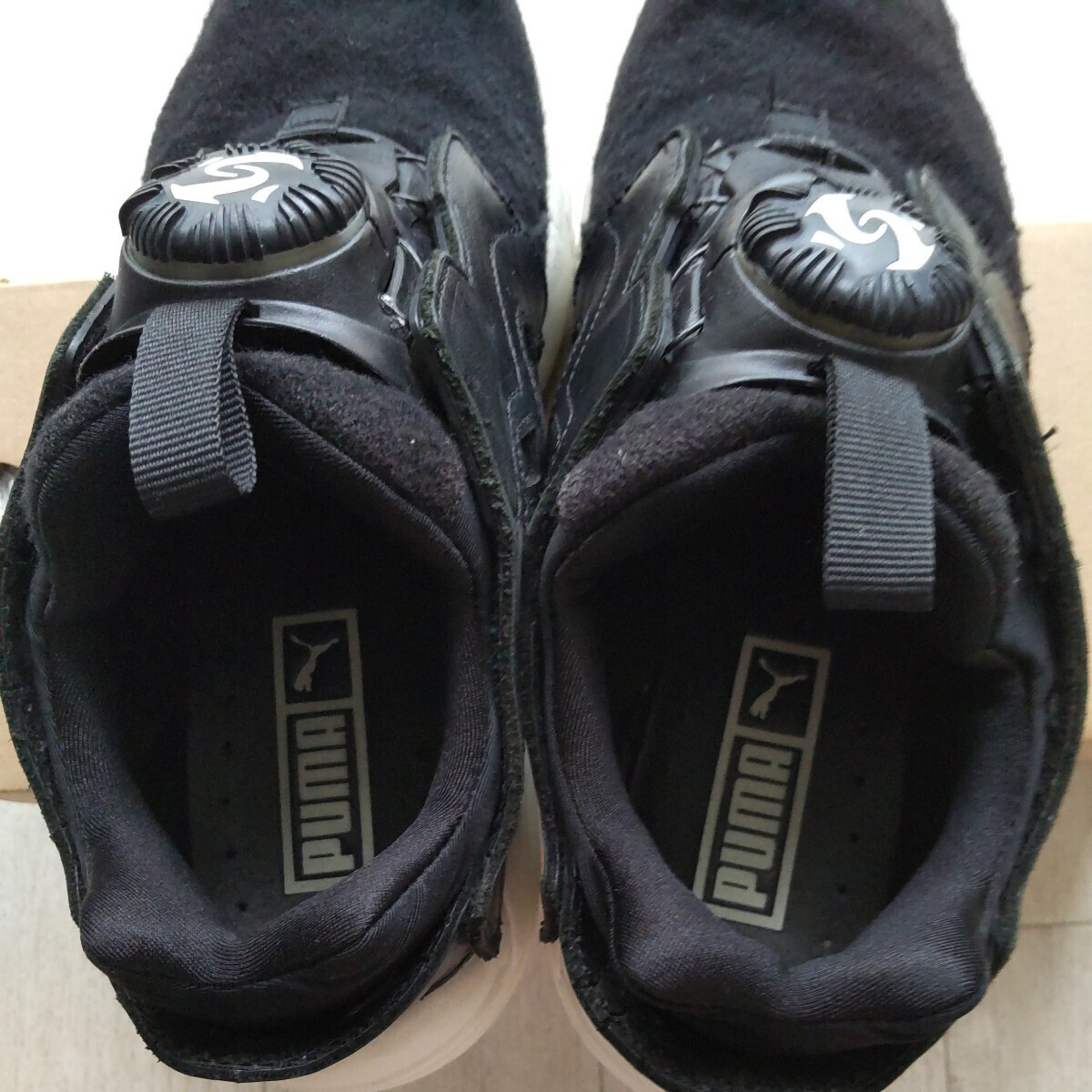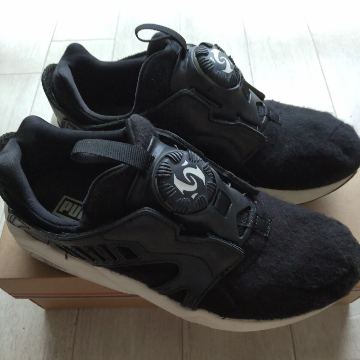 プーマのディスクブレイズ 24cmです。フェルト素材の可愛い感じのスニーカーです。経年感は多少ありますが、決定的なダメージ等はないかと思います。すこしでも不安に感じる場合は絶対に入札しないで下さい。ノークレーム、ノーリターンで宜しくお願い致します。