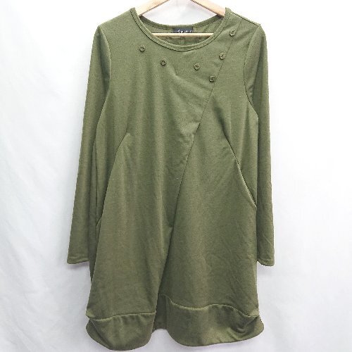 ◇ Amulet アミュレット クルーネック カジュアル 長袖 膝丈 ワンピース サイズXL カーキ レディース E