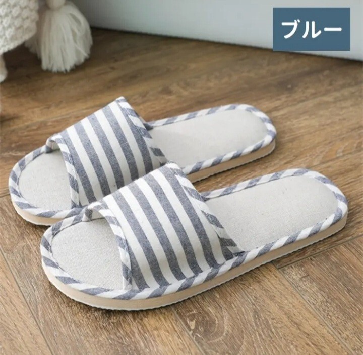 スリッパ 大きいサイズ ルームシューズ 男女兼用 25.5 26.0 26.5 cm ブルー 青 ユニセックス 前あき メンズ レディース 前あきスリッパ 室内履き ボーダー 前開き