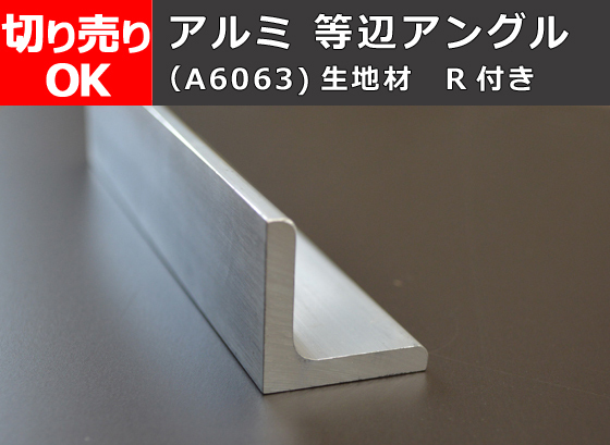 アルミ製等辺アングル・L型(R付き)(材質6063)の生地材、