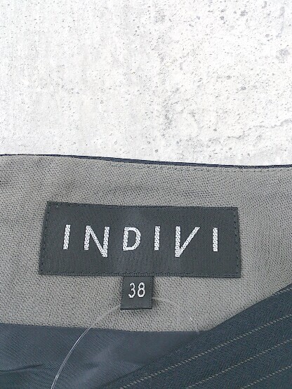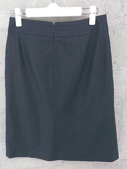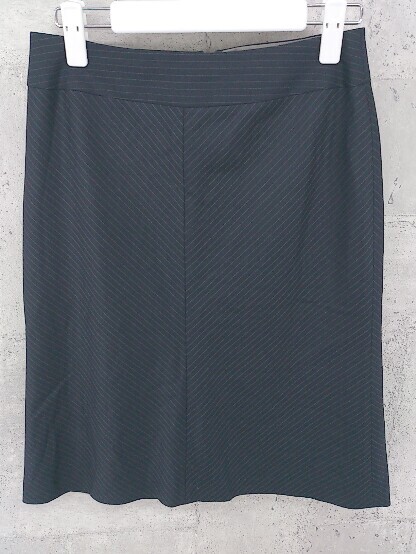◇ INDIVI インディヴィ ストライプ 膝下丈 タイト スカート 38 ネイビー *