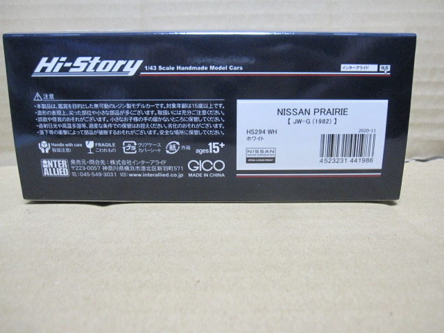 1/43 Hi-story ハイストーリー NISSAN 日産 PRAIRIE プレーリー JW-G1982 ホワイト