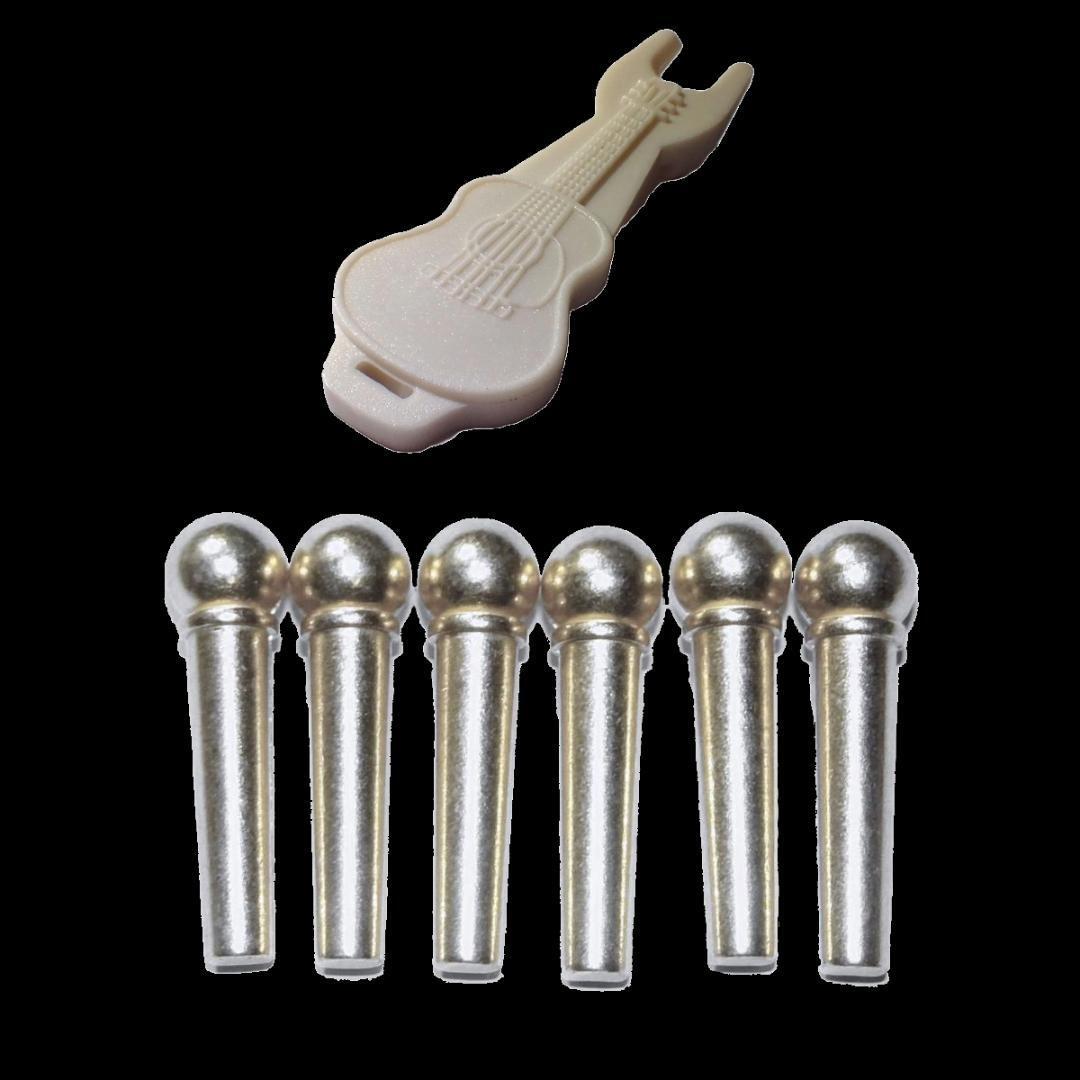 真鍮製 銀色 アコースティックギター アコギ ブリッジピン★ブリッジピン抜き ピンプラー 白色