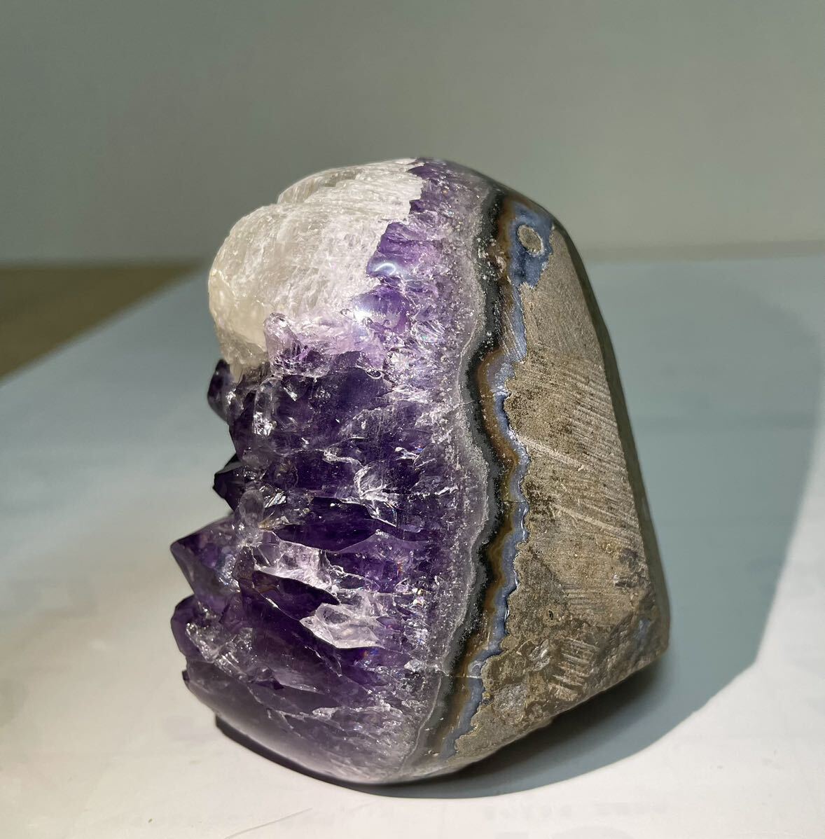 ●アメジストは2月の誕生石です、水晶でも最高位の石とされています。鉄分により紫色の色づいた水晶で、色むらが多いため色あ深く一様に見えるものほど上質とされています。高貴な色を表す紫色をしたアメジストは霊性の高い石とされ、マイナスのエネルギーをプラスに変える効果があるといわれています。第六感を高めて、邪悪なものから身を守るお守りとしての効果も期待でき、「愛の守護石」として大切な人との心の絆を深め、真実の愛を守り抜く強さをはぐくむともされます。