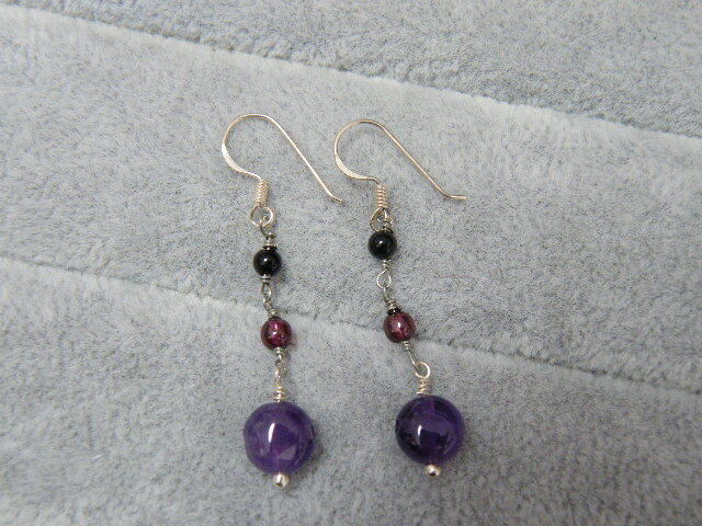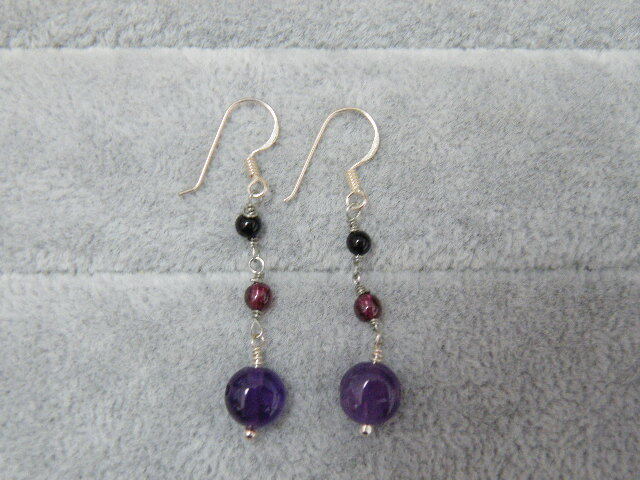 R00106. カラーストン アメジスト シルバー925ロング ピアス