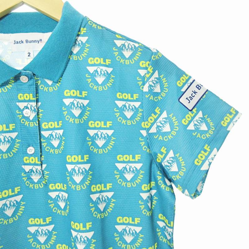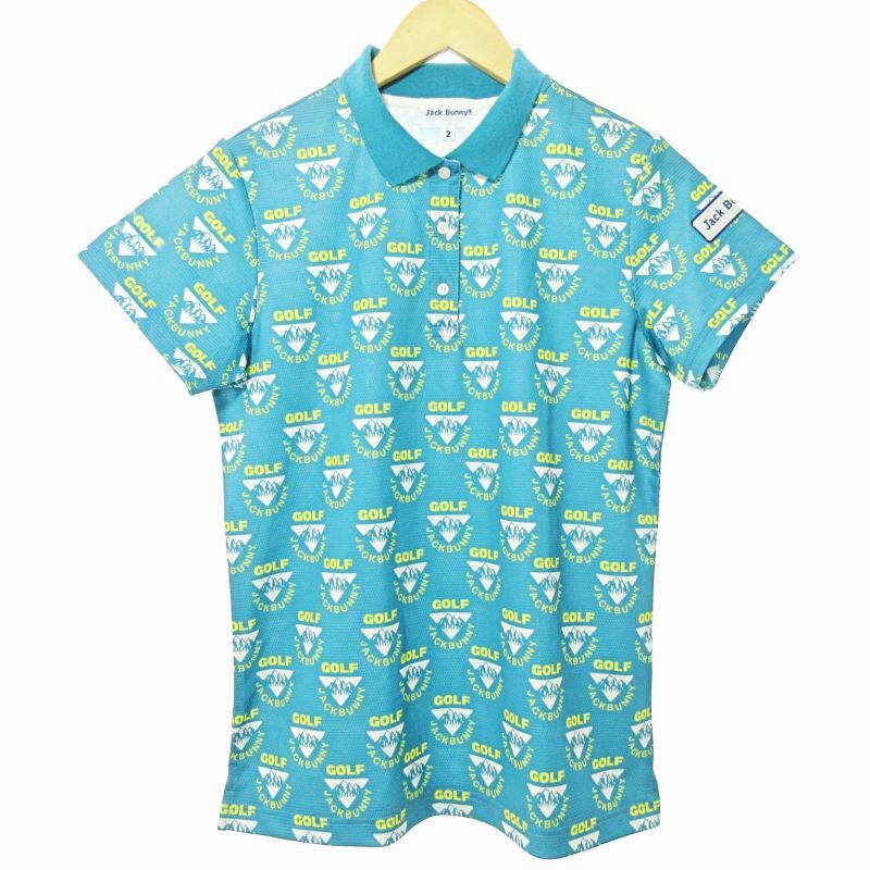 ジャックバニー Jack Bunny!! 近年 ポロシャツ カットソー 半袖 ゴルフ ウエア 総柄 ロゴ 緑 2 0712 ■GY09 レディース