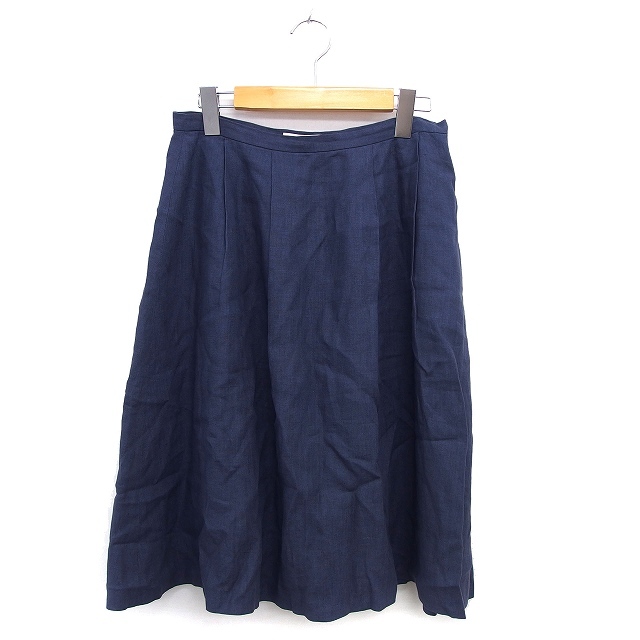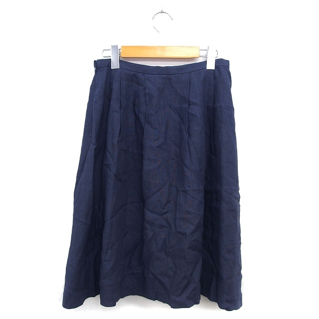 エッフェビームス EFFE BEAMS スカート フレア ロング リネン タック サイドジップ シンプル 40 紺 ネイビー /NT13 レディース