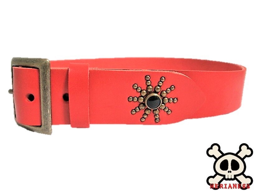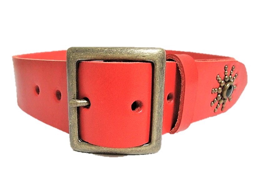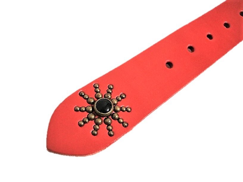 栃木レザー エンドオンリースタッズベルト 赤(オニキススポッツ)ヴィンテージタイプ 一枚革