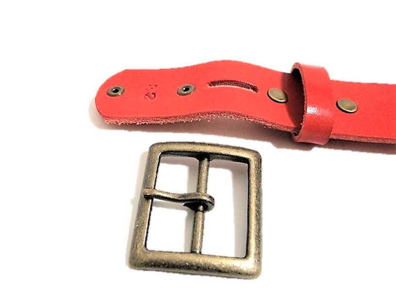 ベルトの幅は40mm。革の厚みは 4mm(多少の誤差はあります。)色は赤色です。