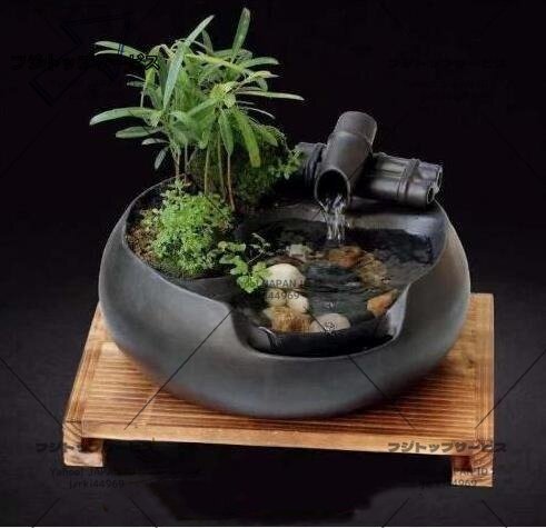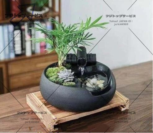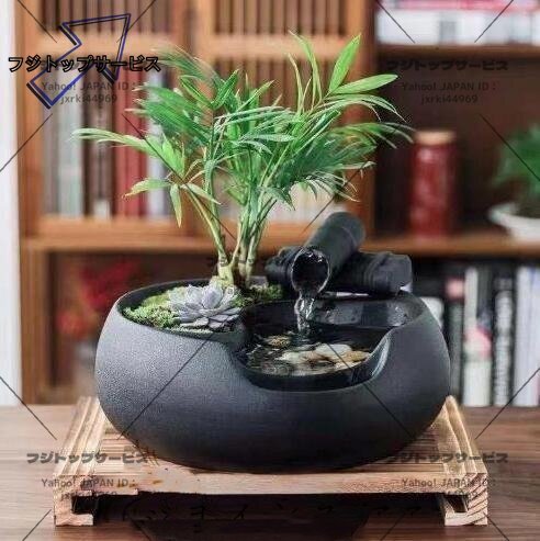 人気美品★ セレブ好物卓上噴水 天然 加湿器 植木鉢 竹 玄関噴水 風水 加湿 開運書斎用 癒し インテリア雑貨