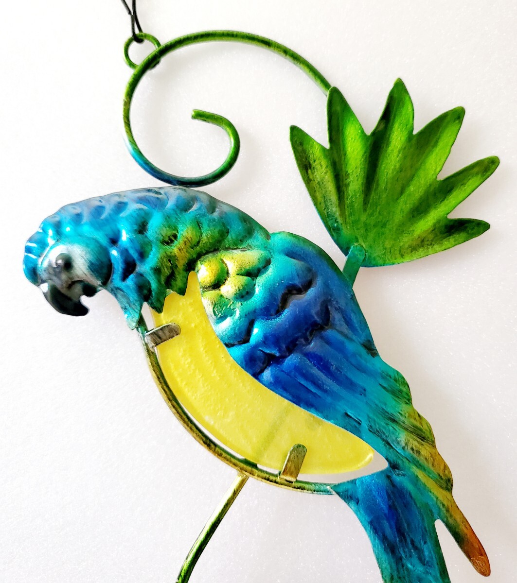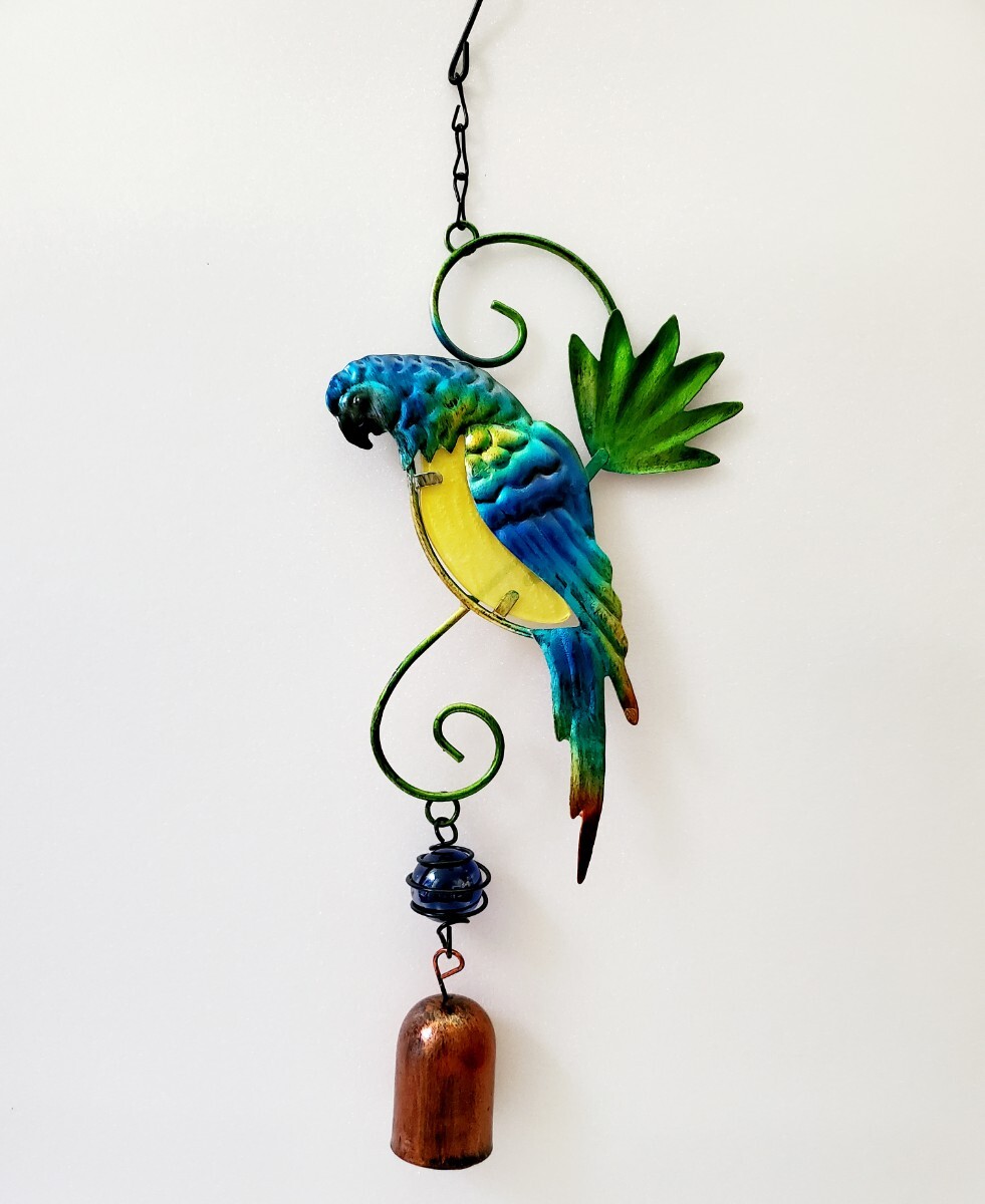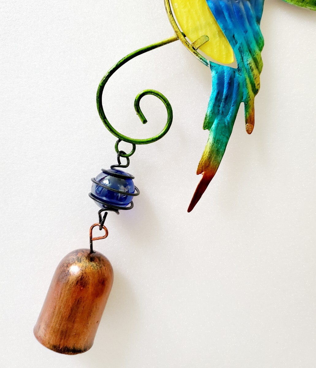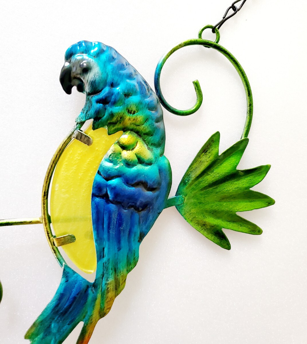 青いオウムをモチーフした美しい色合いのメタルクリスタルのウィンドチャイムです。