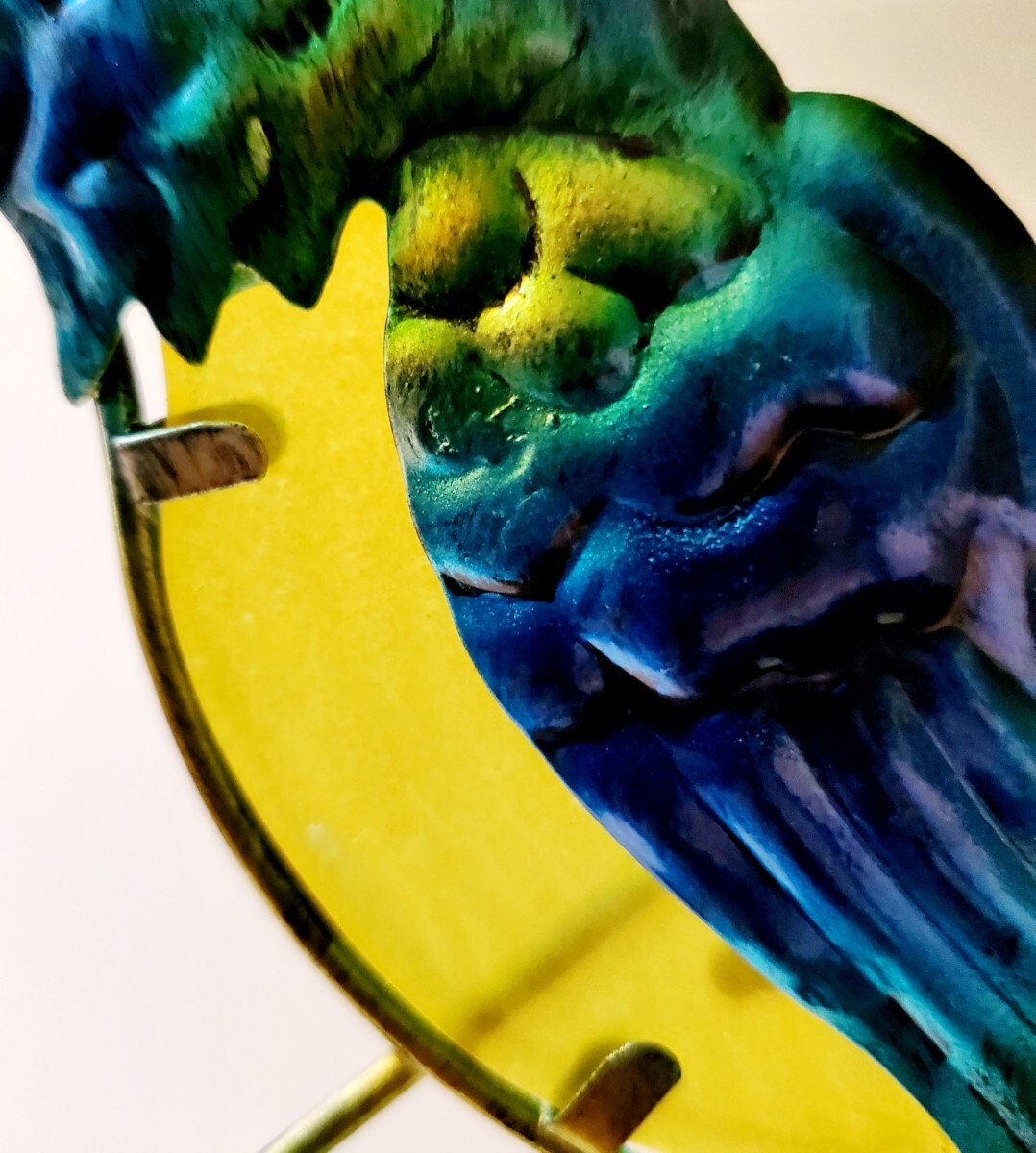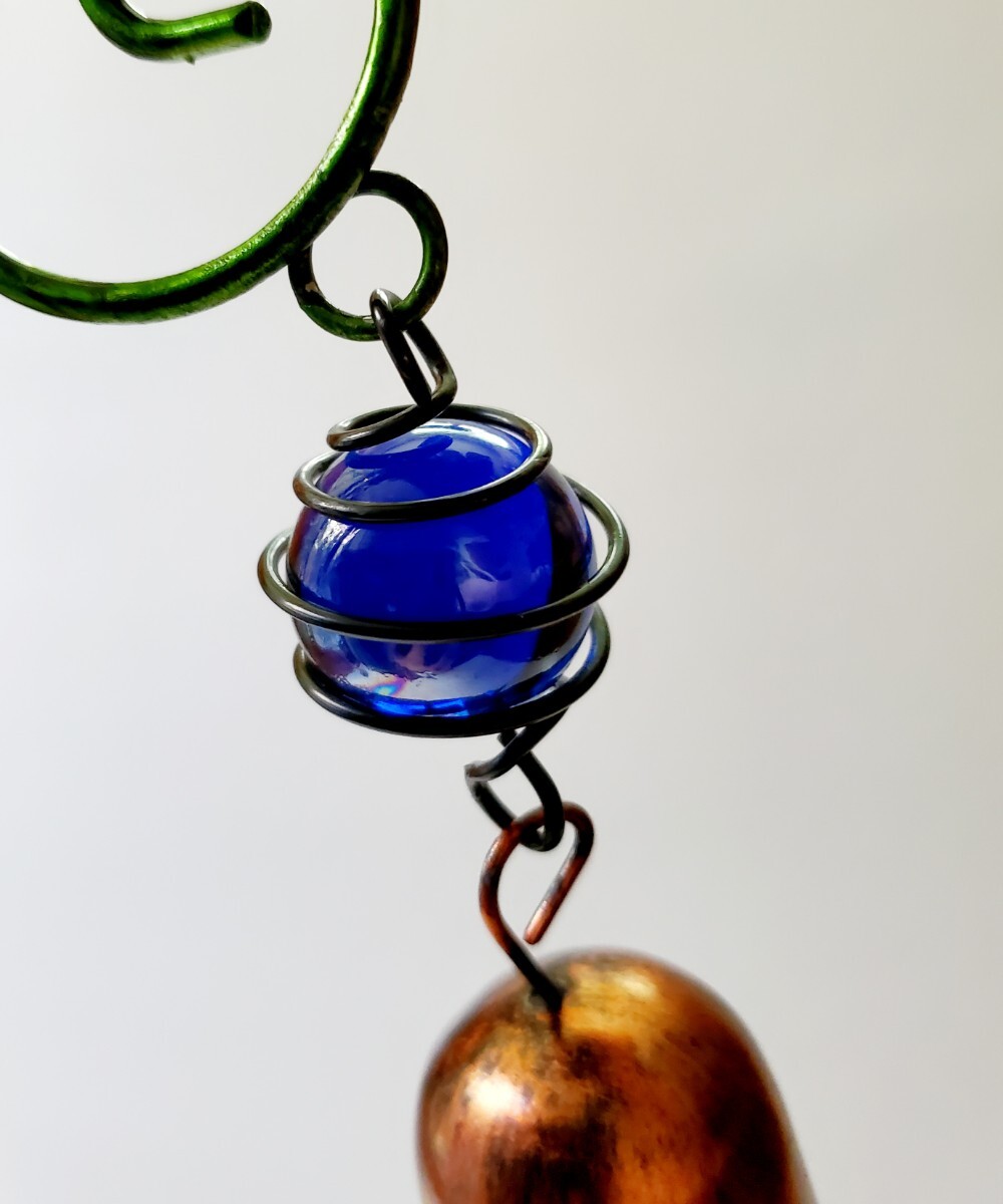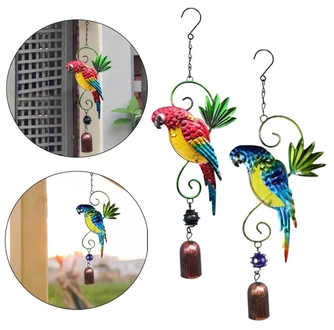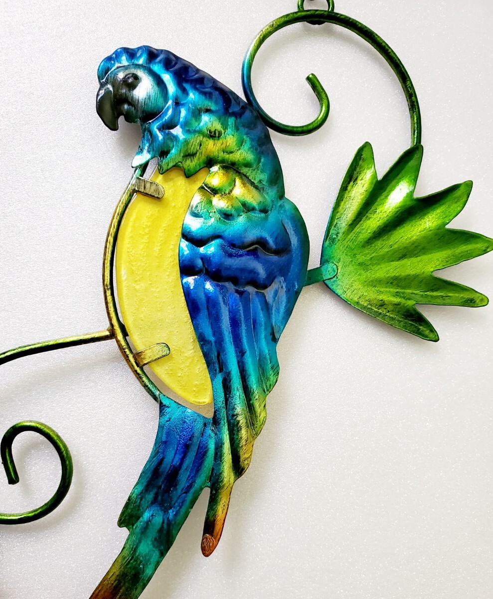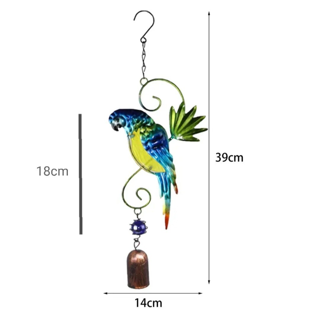 青いオウムをモチーフした美しい色合いのメタルクリスタルのウィンドチャイムです。