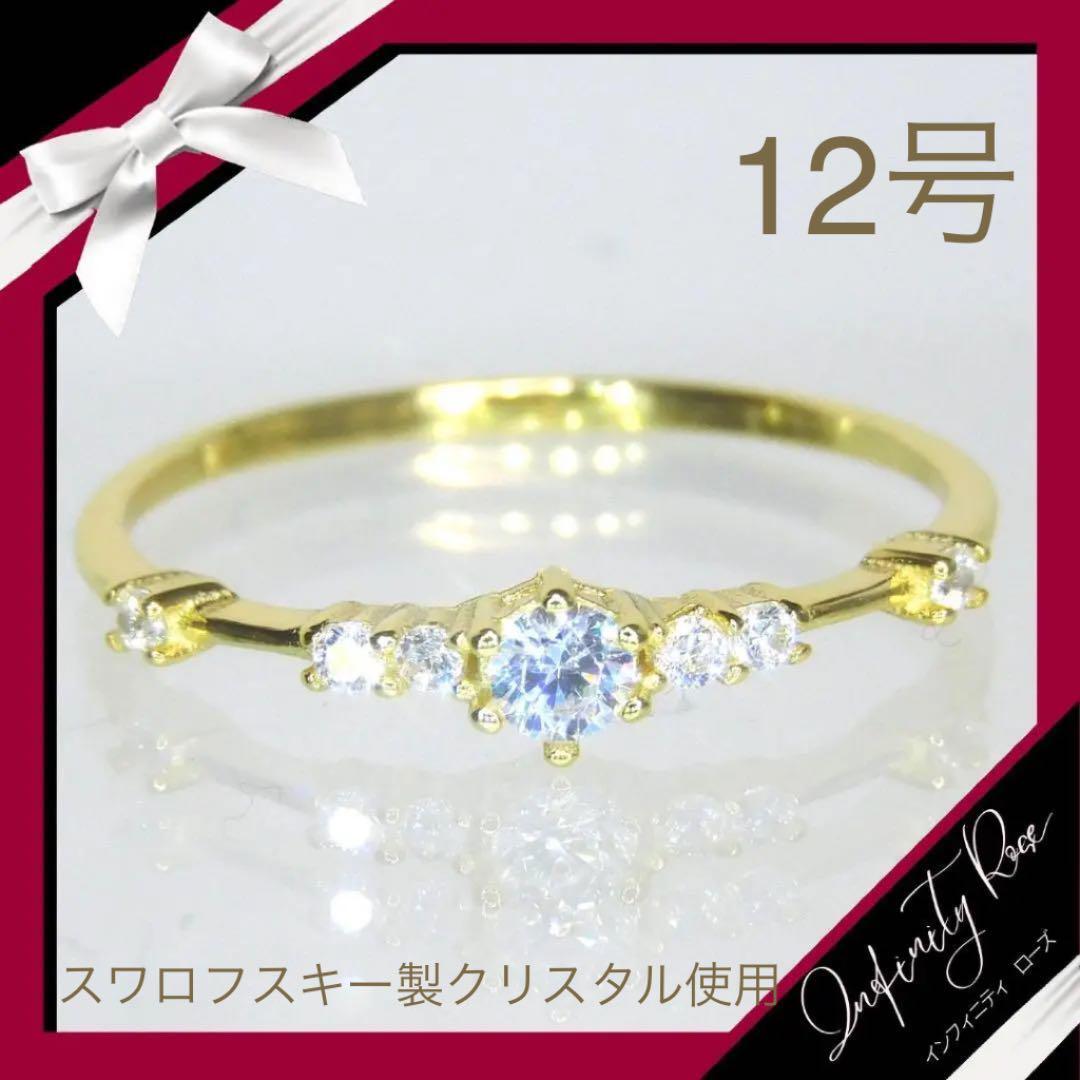 (1186)12号 ゴールド 極極細エンゲージリング 高価爪留め指輪