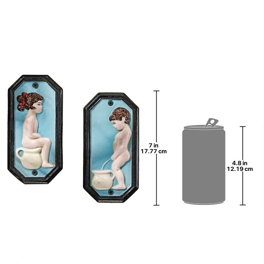 セール!即納!【ティンクル ツインズ(お手洗いサイン 男の子、女の子用) バスルーム トイレ鋳鉄製壁装飾 彫像 コレクティブル装飾置物 新店舗お祝い 贈り物(輸入品)】