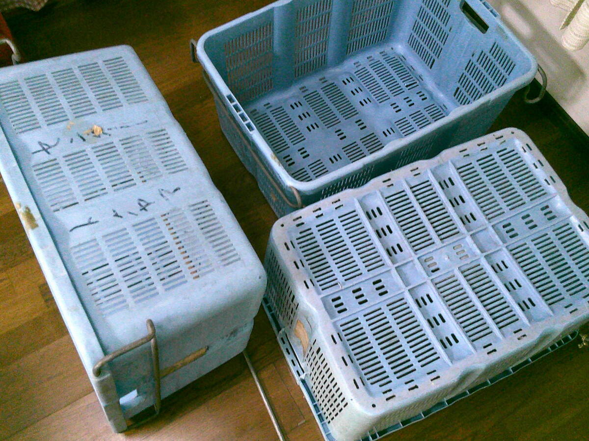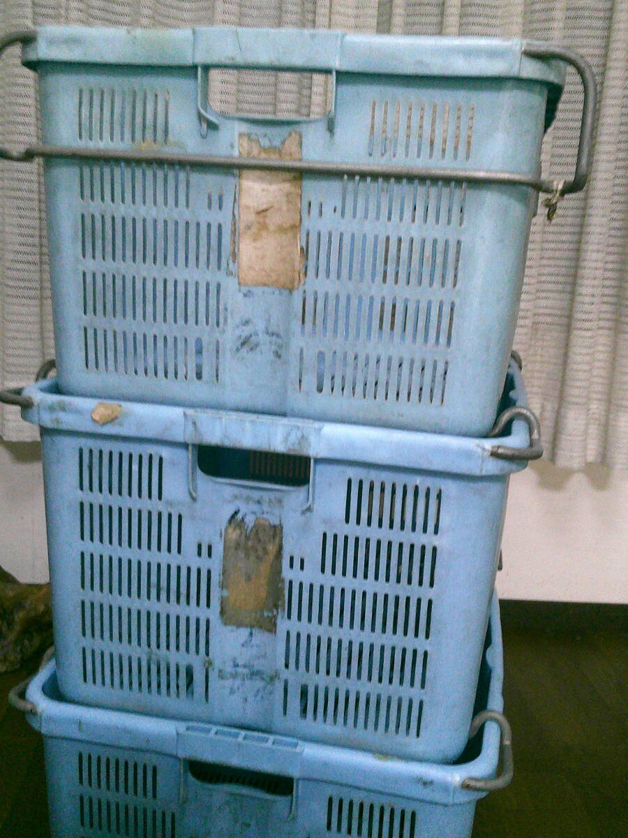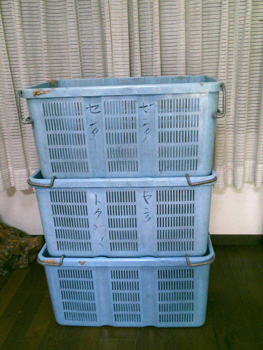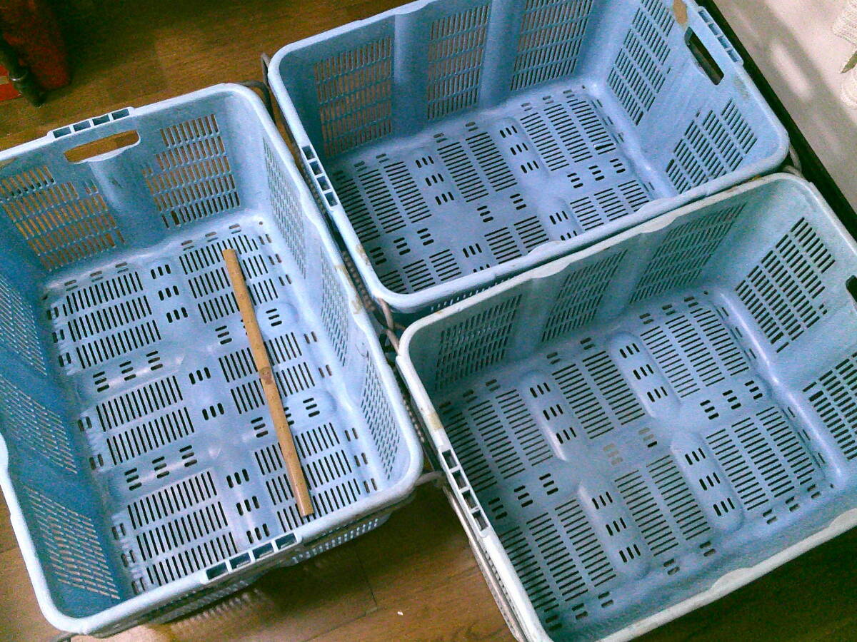 作業用 特大 籠 収穫 カゴ【コンテナ 3個 セット】 丈夫 コンテナ 水色 70cmx49cmx33cm 3.8kg 中古 特大カゴ 便利 まとめて 現状 兼用 格安