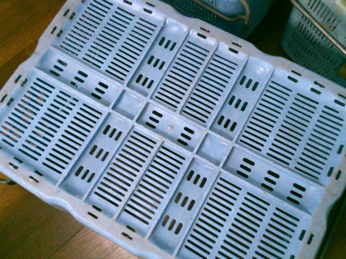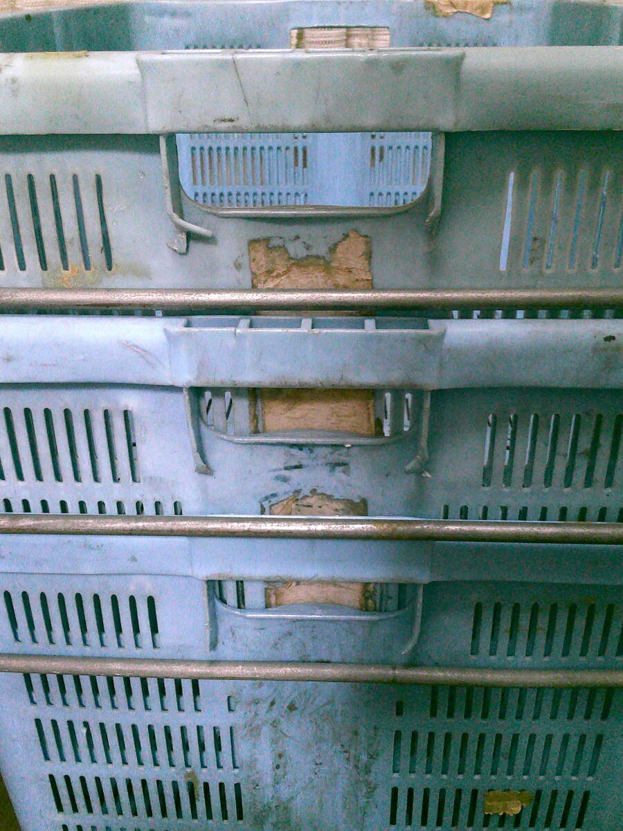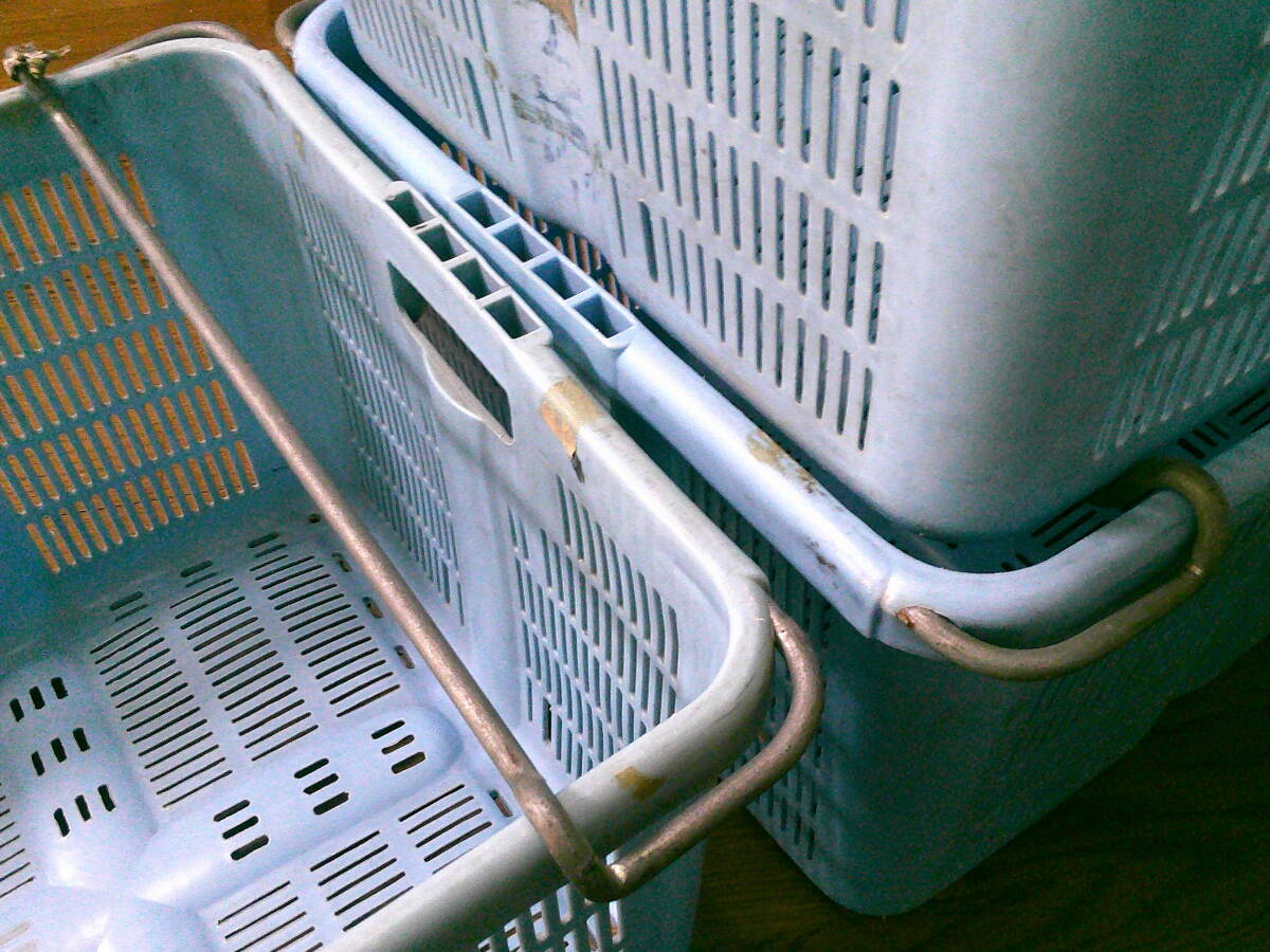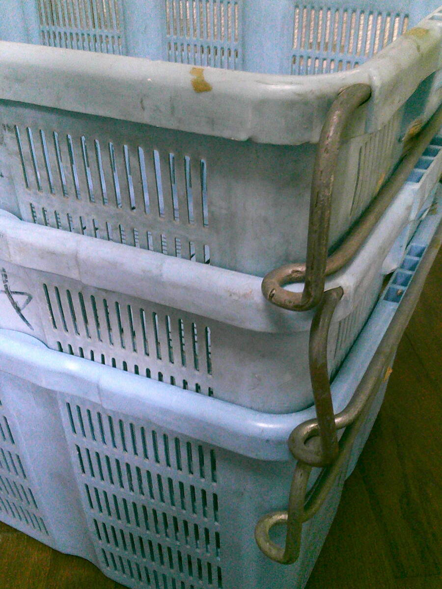 作業用 特大 籠 収穫 カゴ【コンテナ 3個 セット】 丈夫 コンテナ 水色 70cmx49cmx33cm 3.8kg 中古 特大カゴ 便利 まとめて 現状 兼用 格安