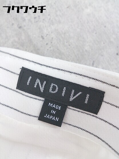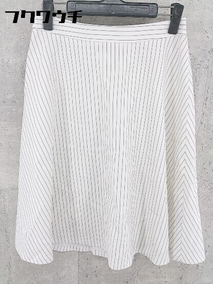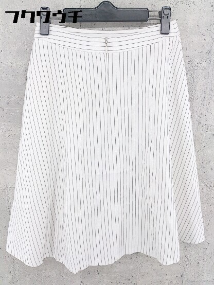 ◇ INDIVI インディヴィ ストライプ 膝丈 フレア スカート サイズ36 ホワイト レディース