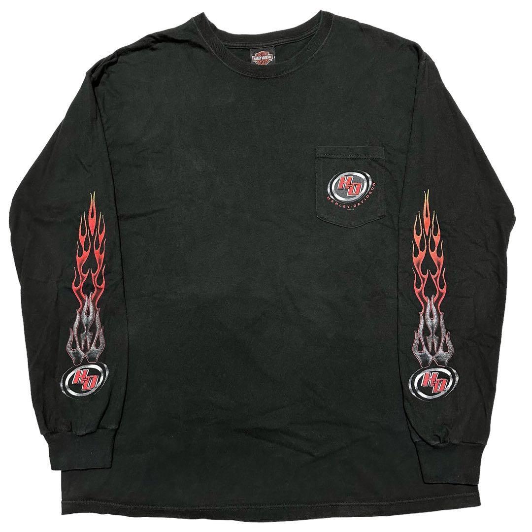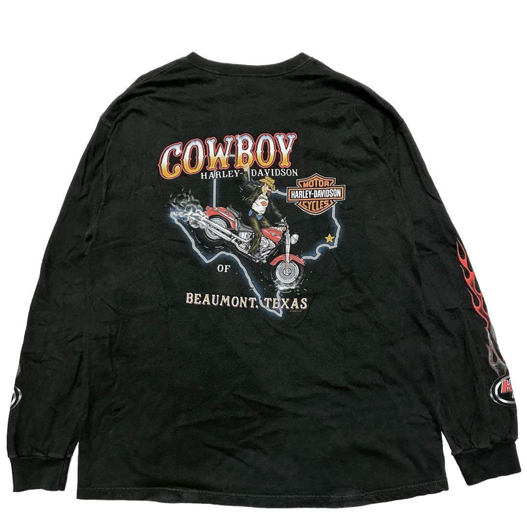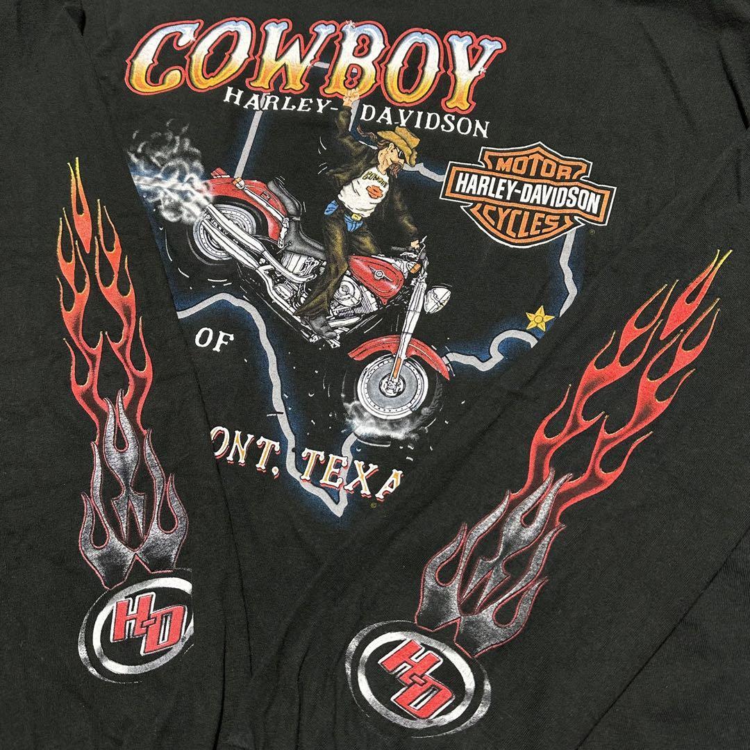 【00s】USA製 ハーレーダビッドソン 胸ポケ フレイム カウボーイ ロンT