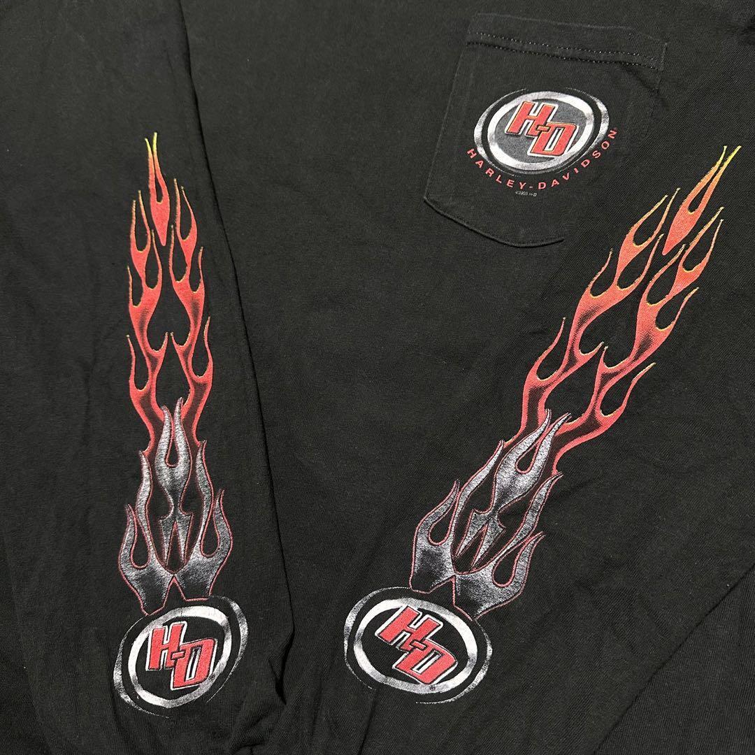 【00s】USA製 ハーレーダビッドソン 胸ポケ フレイム カウボーイ ロンT